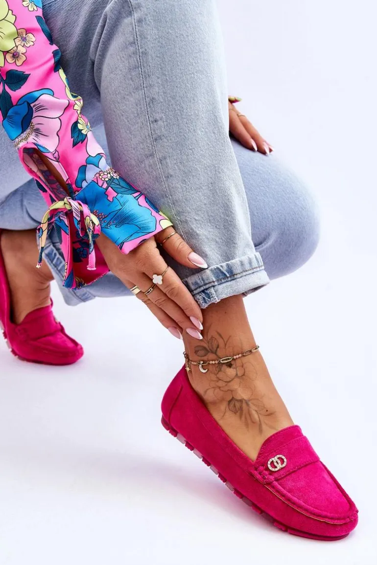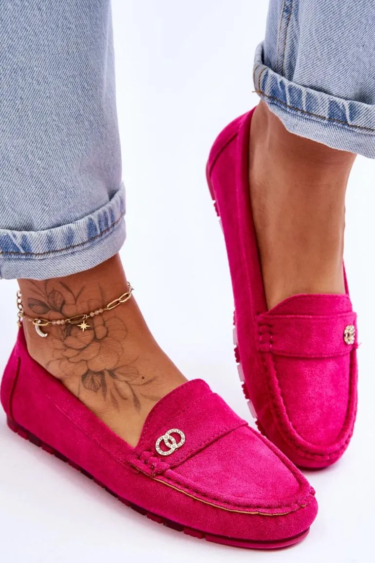 Klasyczne, wsuwane mokasyny zostały wykonane z eko zamszu. Na pasku z przodu znajduje się ozdoba z dżetami. Mokasyny zostały osadzone na platformie z gumową, antypoślizgową podeszwą. Miękka wkładka z eko skóry zapewni Ci wygodę podczas użytkowania. Świetny model do wielu wiosenno-jesiennych stylizacji! Przy wyborze rozmiaru prosimy sugerować się tabelą rozmiarów.