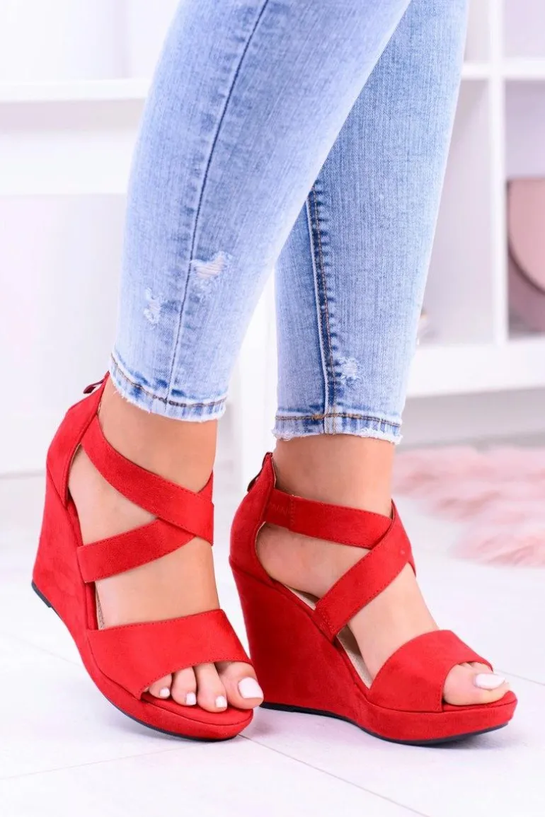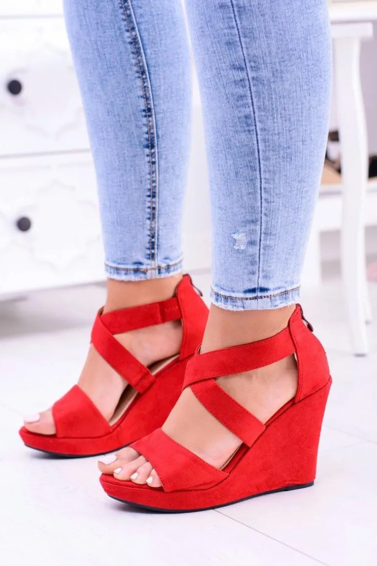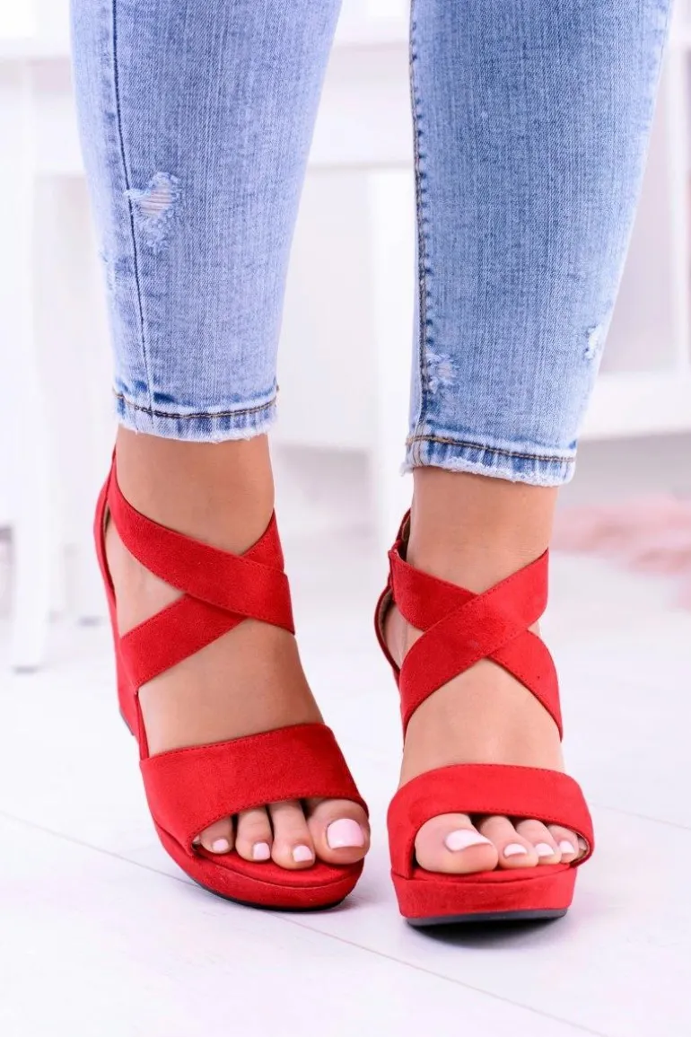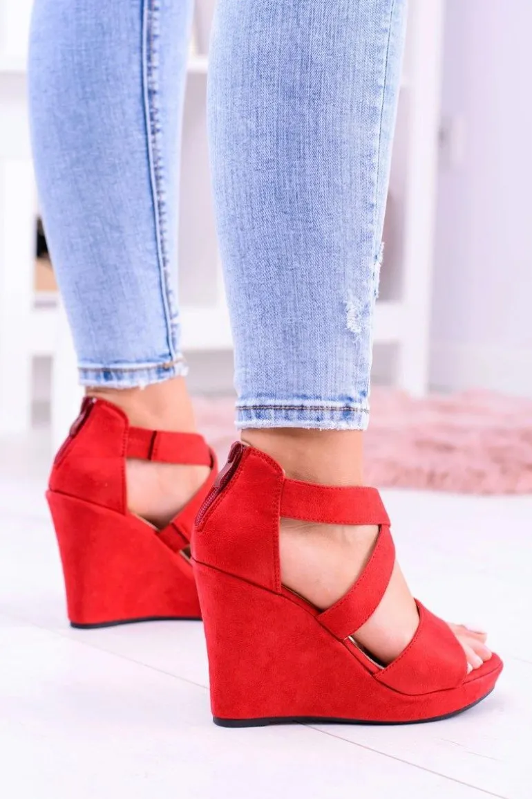 Wygodne Damskie Czerwone Sandały Koturny Mirabet