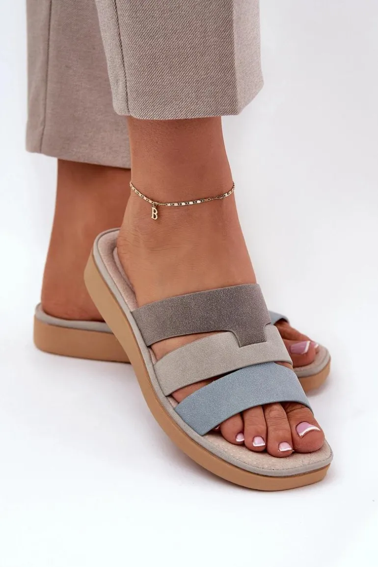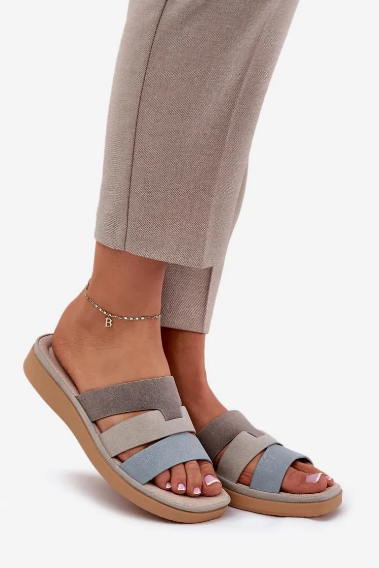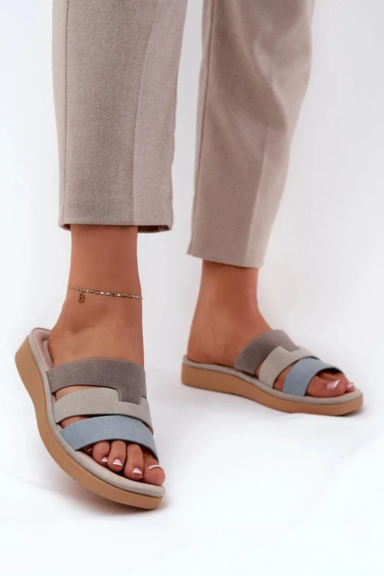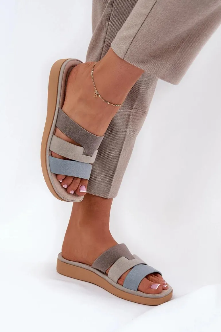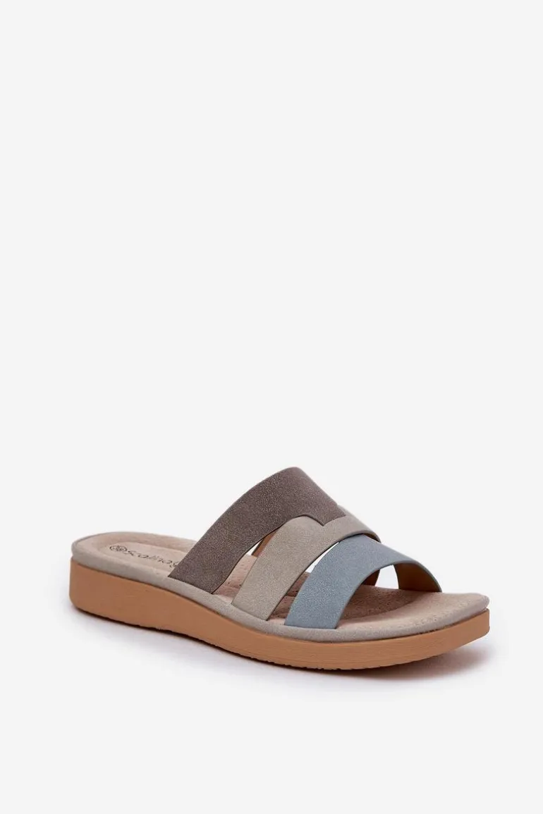 Wygodne Klapki Damskie Beżowo-Niebieskie Oxena