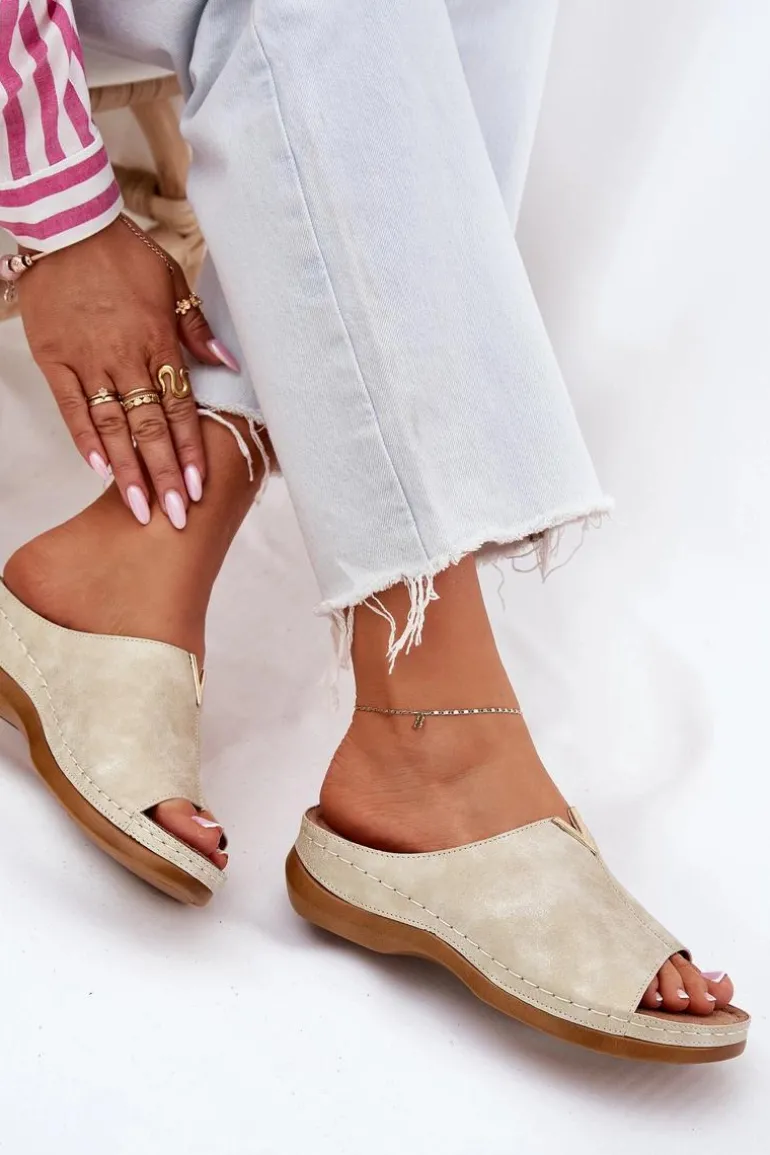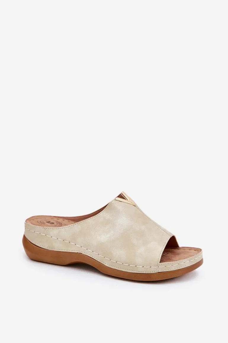 Eleganckie damskie klapki wykonane z eko skóry to połączenie stylu i komfortu. Osadzone na koturnie, zapewniają lekkość oraz stabilność przez cały dzień. Model ten posiada miękką wkładkę Comfortshoe z efektem poduszki, co gwarantuje wygodę nawet przy długotrwałym noszeniu. Te klapki doskonale komponują się z codziennymi stylizacjami, łącząc elegancję z funkcjonalnością. Idealne na ciepłe dni! Przy wyborze rozmiaru prosimy sugerować się tabelą rozmiarów.