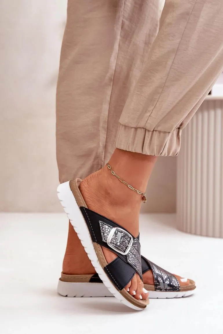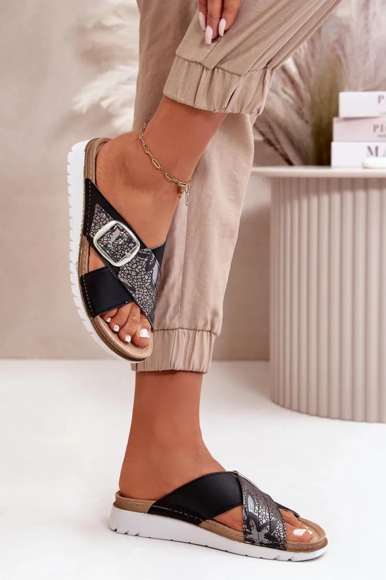 Klapki damskie od marki Inblu. Osadzone na delikatnym koturnie. Wykonane z wysokiej jakości materiałów. Wkładka jest profilowana oraz dostosowana do anatomicznego kształtu stopy. Przy wyborze rozmiaru prosimy sugerować się tabelą rozmiarów.