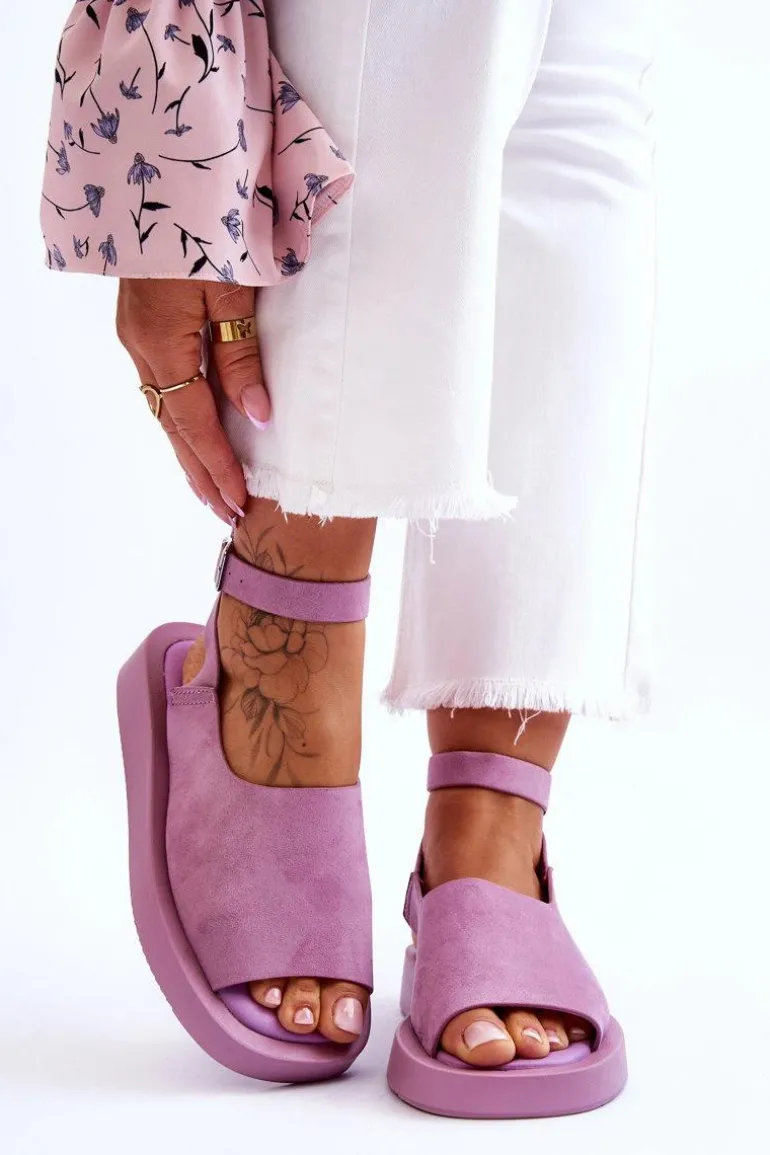 Wygodne Sandały Damskie Na Platformie Fioletowe Rubie