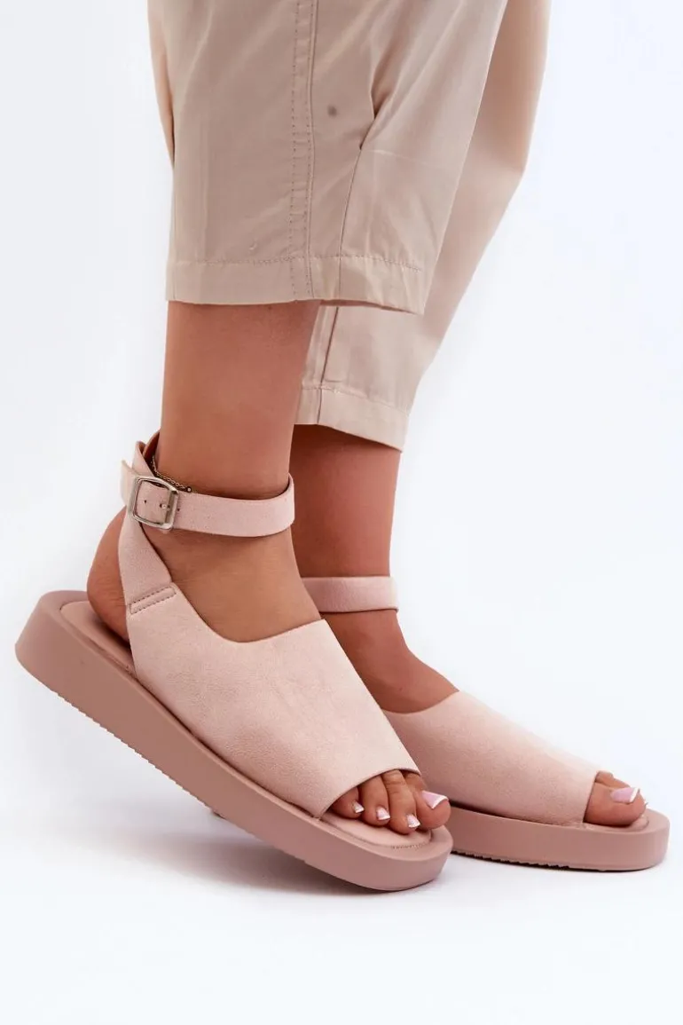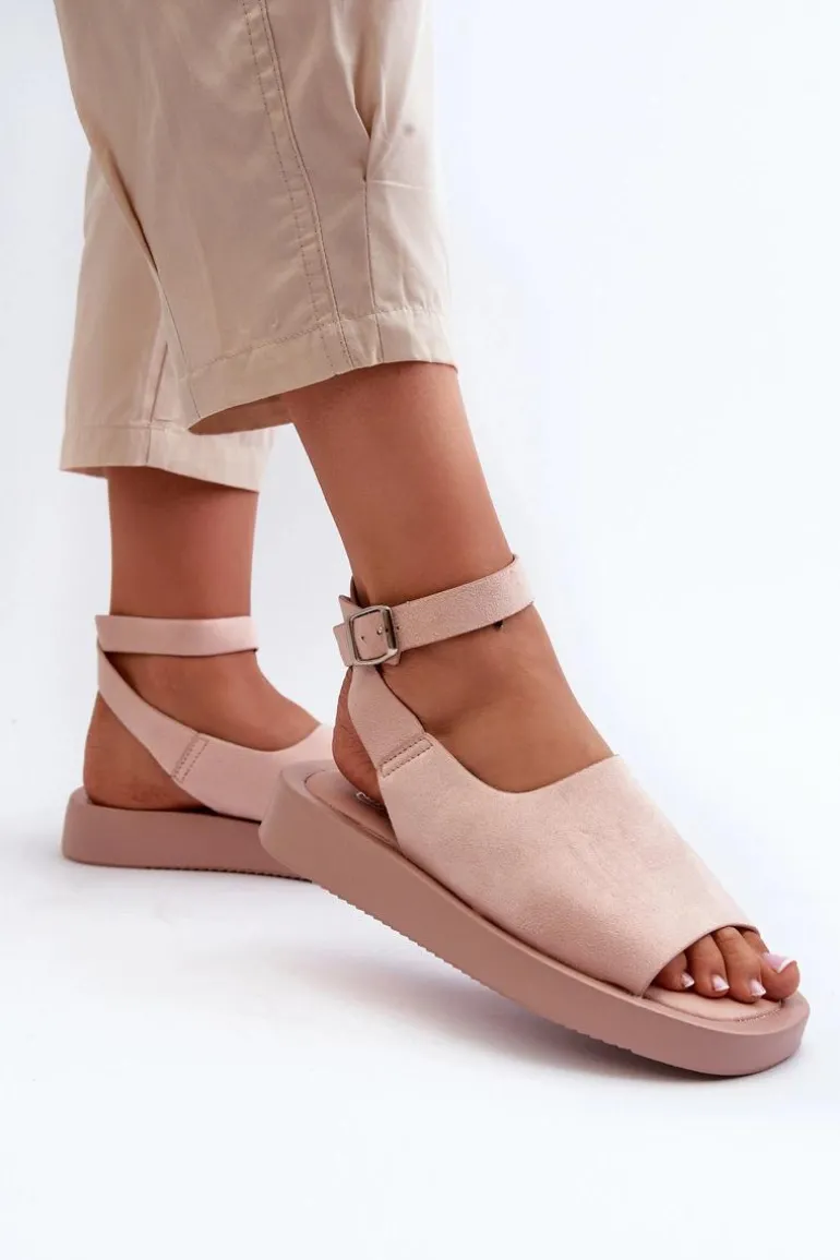 Wyjątkowe sandały damskie na platformie. Buty te zostały wykonane z miłego w dotyku eko zamszu. Posiadają miękką, eko skórzaną wkładkę. Sandałki są zapinane wokół kostki na regulowany pasek ze sprzączką. Ten niezwykły model z pewnością wzbogaci Twoją letnią garderobę! Przy wyborze rozmiaru prosimy sugerować się tabelą rozmiarów.