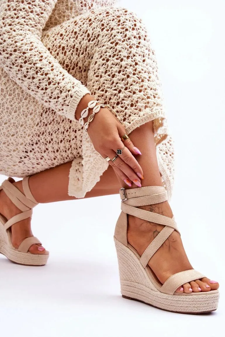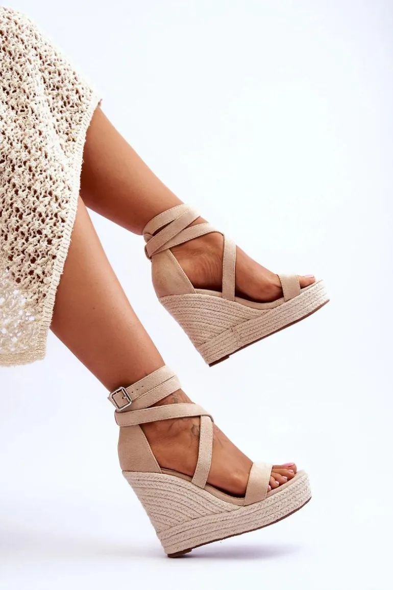 Wygodne Sandały Na Wysokim Koturnie Beżowe Lemira