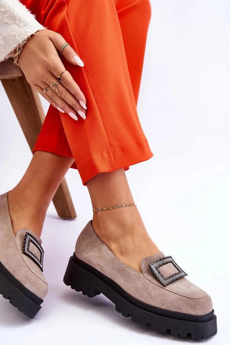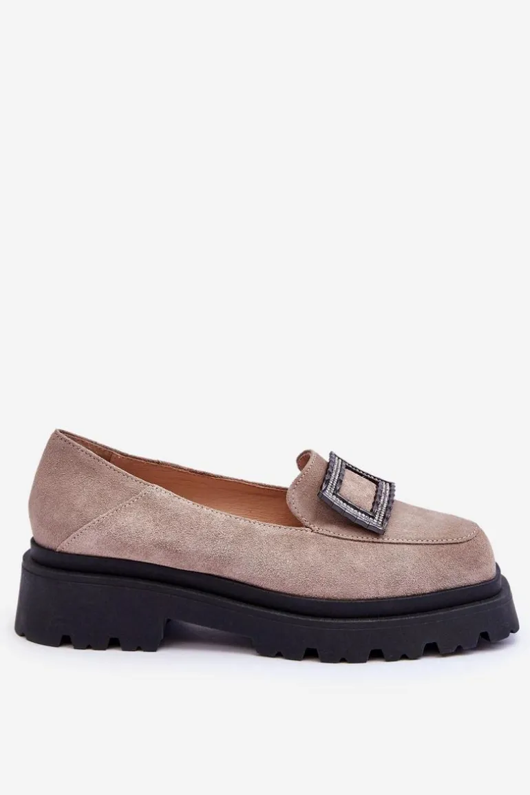 Modne, damskie mokasyny zostały wykonane z naturalnej skóry. Mokasyny osadzono na masywnej platformie oraz płaskim obcasie. Dodatkowo posiadają ozdobę z przodu z dżetami oraz usztywniany zapiętek. Miękka wkładka zapewni komfortowe użytkowanie. Mokasyny świetnie sprawdzą się w wielu stylizacjach! Przy wyborze rozmiaru prosimy sugerować się tabelą rozmiarów.