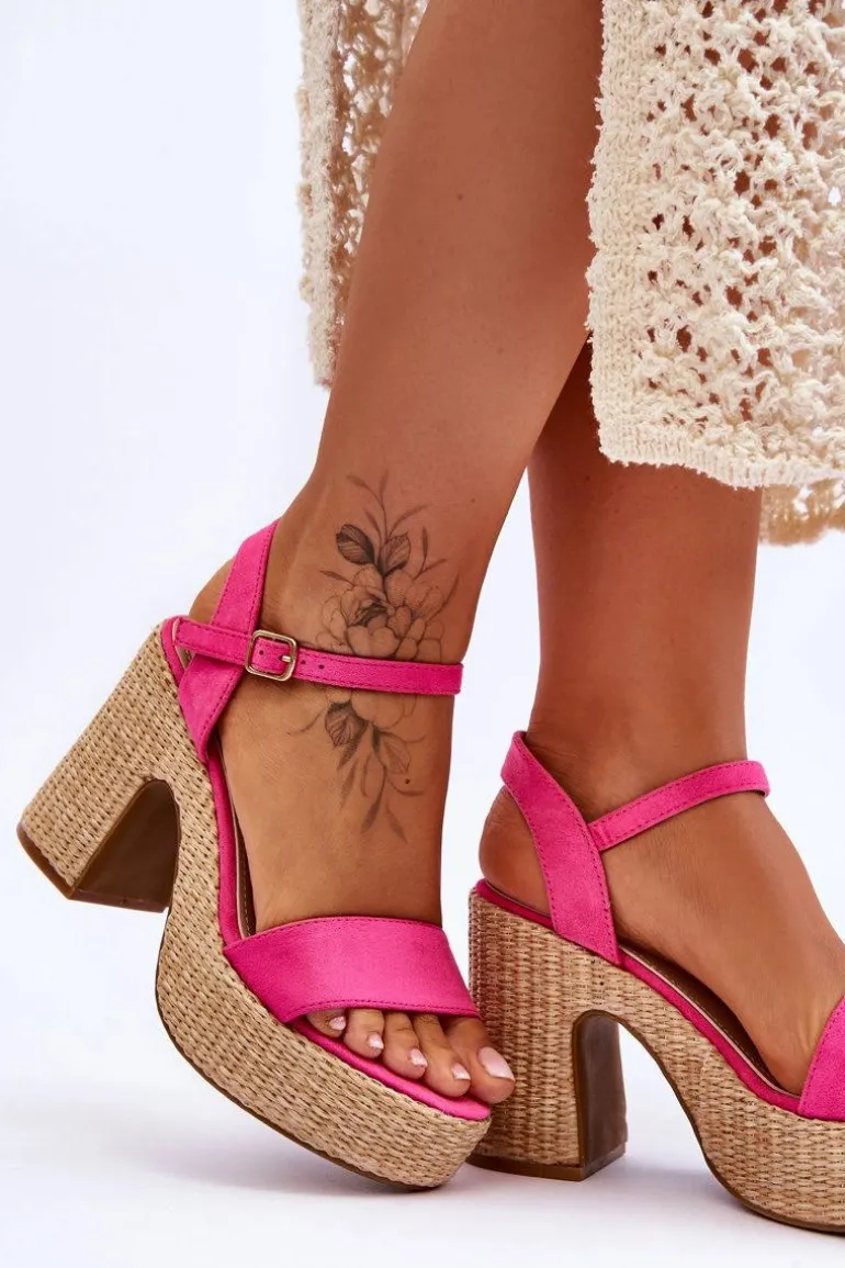 Świetne sandałki na masywnym obcasie w postaci słupka oraz platformie. Wykonane z przyjemnej w dotyku ekologicznej skóry. Sandałki posiadają odkryty, zaokrąglony nosek. Zapinane wokół kostki na regulowany pasek ze sprzączką. Ten model z pewnością sprawdzi się w wielu stylizacjach! Przy wyborze rozmiaru prosimy sugerować się tabelą rozmiarów.