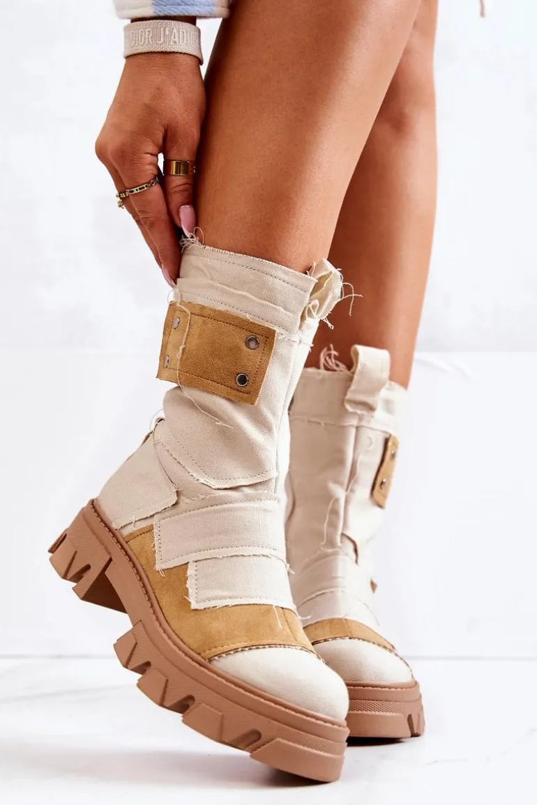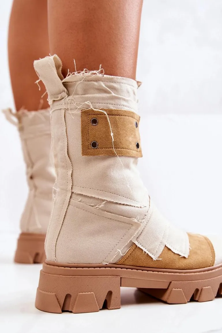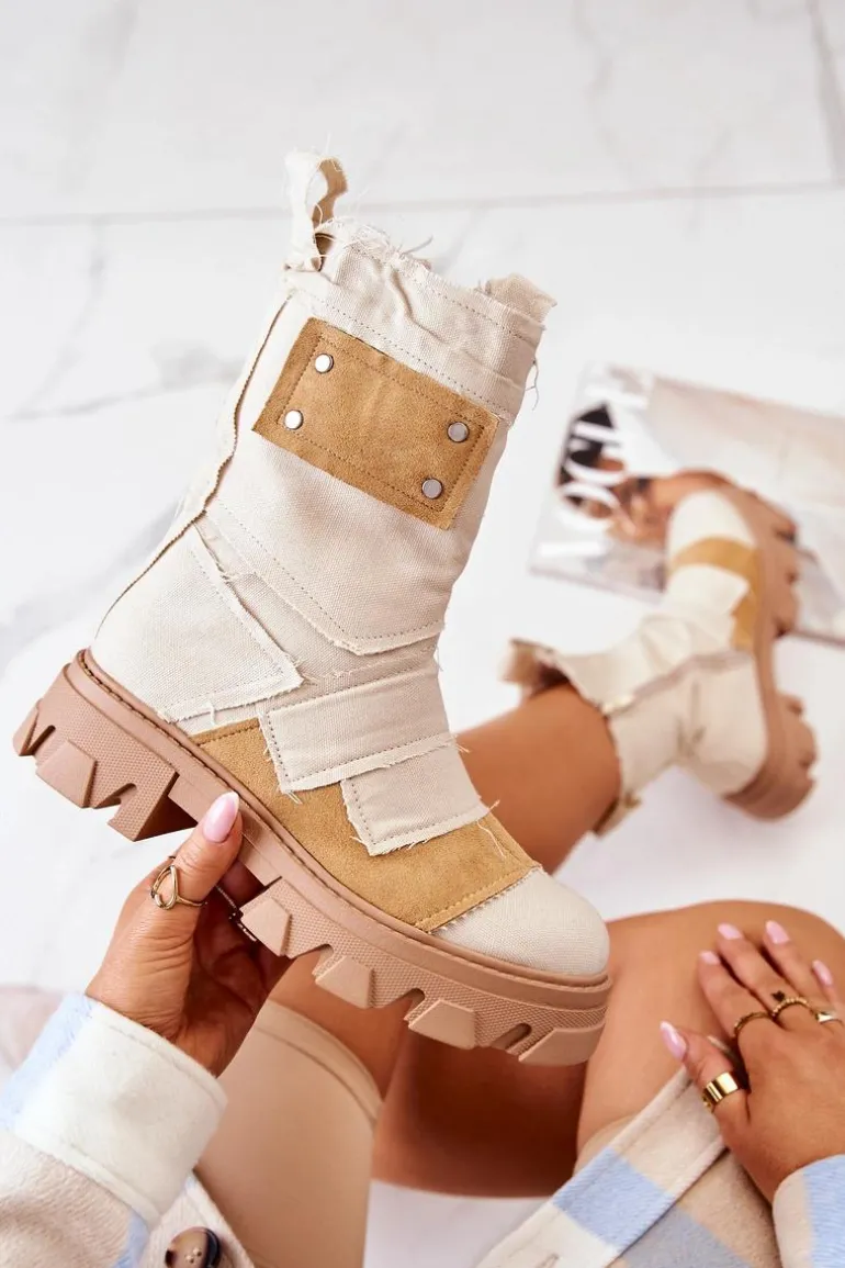 Wysokie Botki Workery Na Suwak Beżowe Nerisa