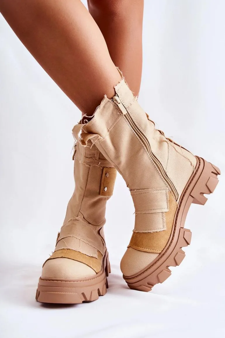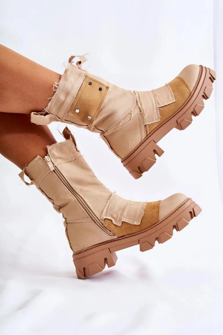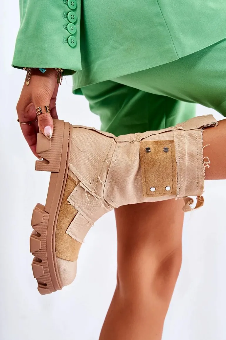 Wysokie botki – workery zostały wykonane z materiału tekstylnego. Masywna podeszwa z szerokim obcasem zapewnia stabilność na każdym kroku. Zapinane na suwak. Posiadają eko skórzaną wkładkę. Cholewka od środka jest wykonana z miękkiej tkaniny. Ciekawy wzór sprawi, że będziesz wyróżniać się spośród tłumu! Ten model to hit! Przy wyborze rozmiaru prosimy sugerować się tabelą rozmiarów.