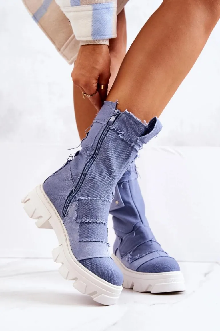 Wysokie botki – workery zostały wykonane z materiału tekstylnego. Masywna podeszwa z szerokim obcasem zapewnia stabilność na każdym kroku. Zapinane na suwak. Posiadają eko skórzaną wkładkę. Cholewka od środka jest wykonana z miękkiej tkaniny. Ciekawy wzór sprawi, że będziesz wyróżniać się spośród tłumu! Ten model to hit! Przy wyborze rozmiaru prosimy sugerować się tabelą rozmiarów.