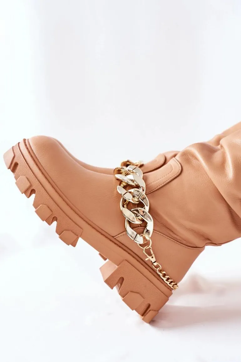 Kozaki do kolana wykonane ze skóry ekologicznej. Wnętrze ocieplane kocem obuwniczym.