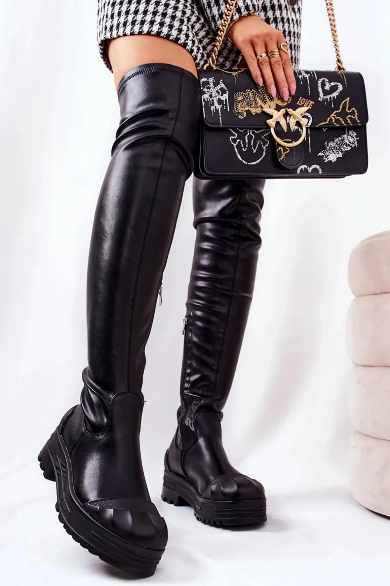 Wysokie kozaki za kolano wykonane z eko skóry. Posiadają ozdobny, gumowy nosek oraz zapiętki. Kozaki są zapinane na suwak u dołu cholewki. Masywna podeszwa zapewnia stabilność. W środku na wysokości stopy posiadają ocieplenie w postaci delikatnego koca obuwniczego. Koniecznie sprawdź także pozostałą naszą ofertę kozaków!