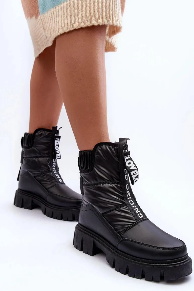 Modne, damskie śniegowce zostały wykonane z materiałów odpornych na wiatr czy mróz. Osadzone na płaskim obcasie i platformie. Model ten zapinany jest na suwak z przodu. Grube ocieplenie w postaci futerka zapewni ochronę przed zimnem. Przy wyborze rozmiaru prosimy sugerować się tabelą rozmiarów.