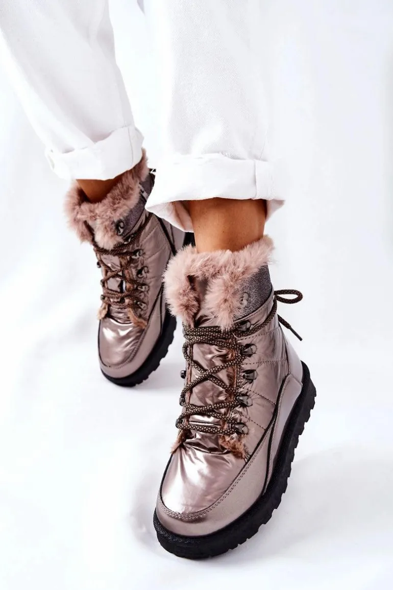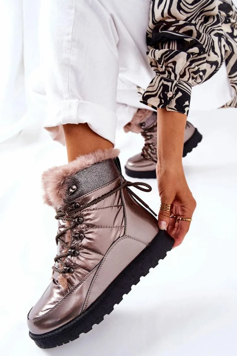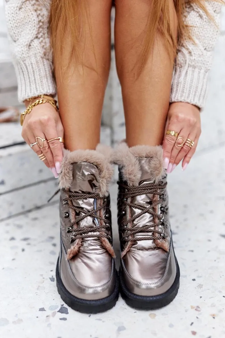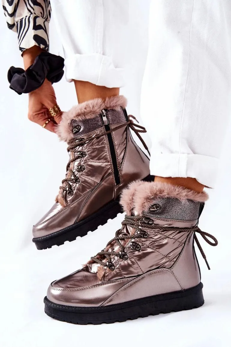 Ocieplane futerkiem śniegowce pomogą Ci przetrwać chłodniejsze dni! Zewnętrzna część buta została wykonana z materiału tekstylnego oraz lakierowanej eko skóry. Zapinane są na suwak. Futerko ma dłuższe włosie oraz jest bardzo miłe w dotyku. Przy wyborze rozmiaru prosimy kierować tabelą rozmiarów.