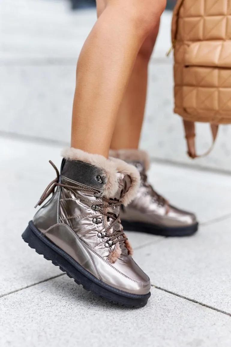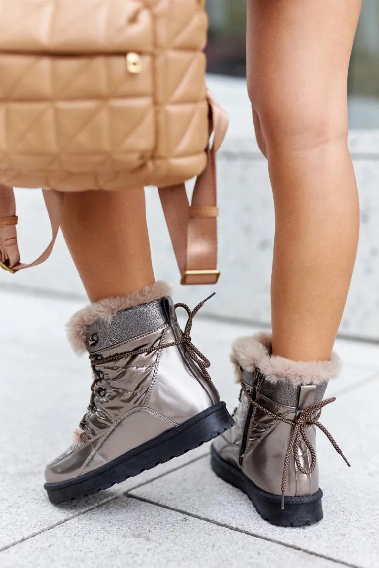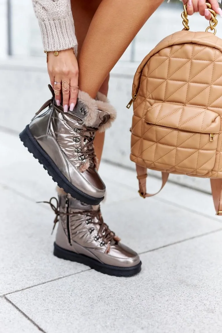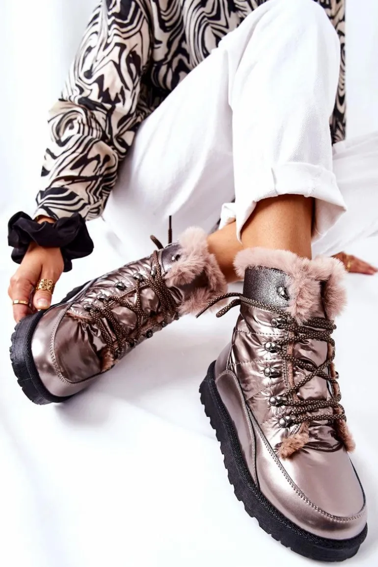 Ocieplane futerkiem śniegowce pomogą Ci przetrwać chłodniejsze dni! Zewnętrzna część buta została wykonana z materiału tekstylnego oraz lakierowanej eko skóry. Zapinane są na suwak. Futerko ma dłuższe włosie oraz jest bardzo miłe w dotyku. Przy wyborze rozmiaru prosimy kierować tabelą rozmiarów.