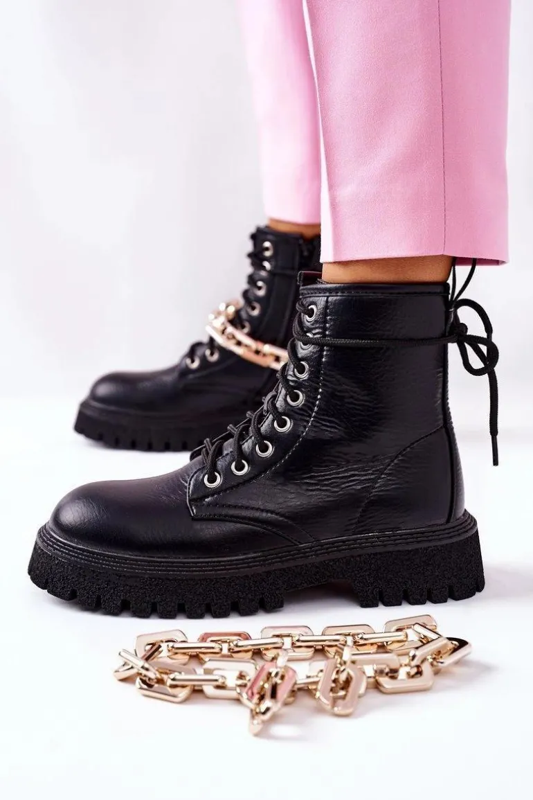 Botki damskie wykonane ze skóry ekologicznej. Posiadają zapinanie na zamek z boku. Przy wyborze rozmiaru prosimy sugerować się tabelą rozmiarów.
