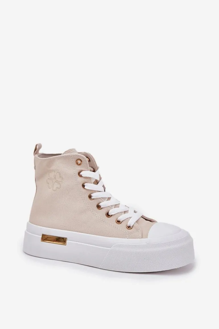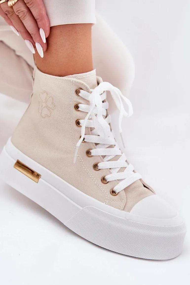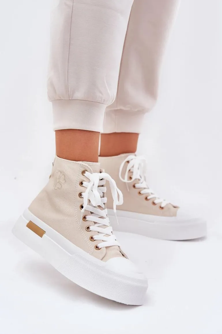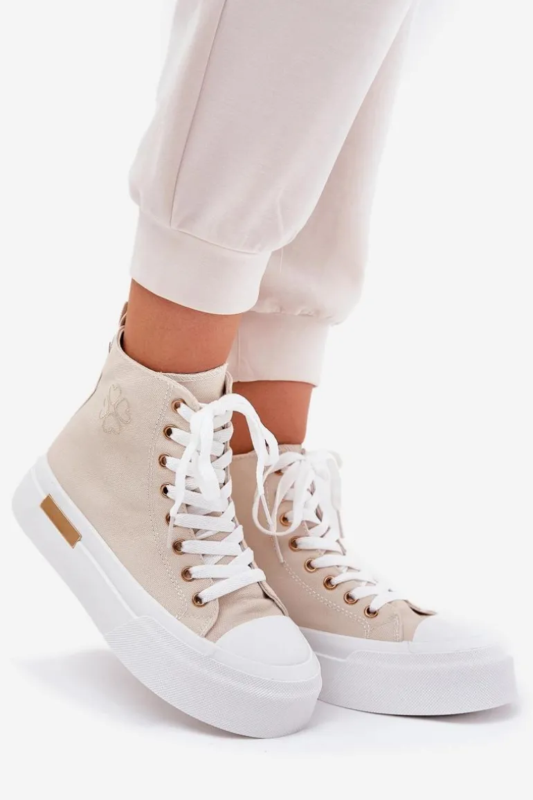 Wysokie Trampki Damskie Na Platformie Beżowe Laviriona