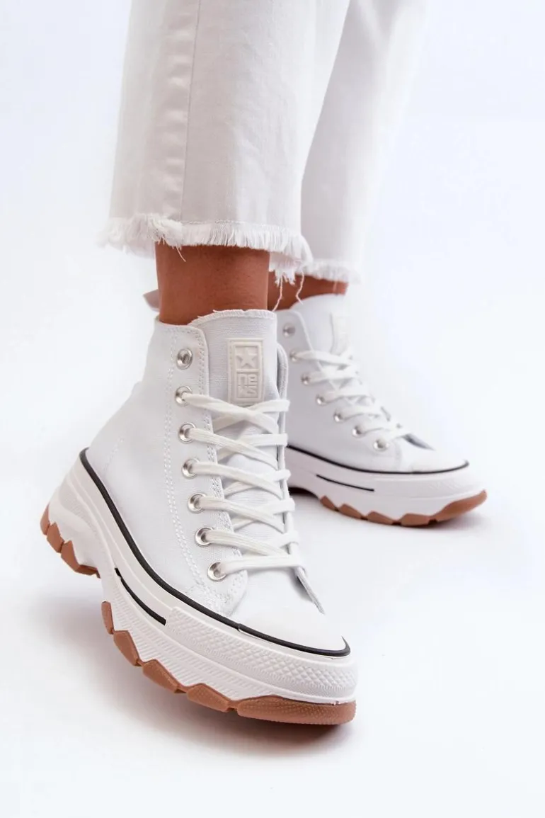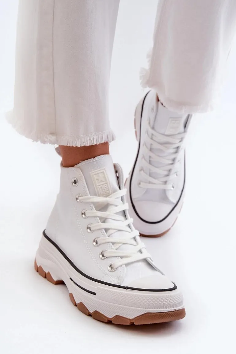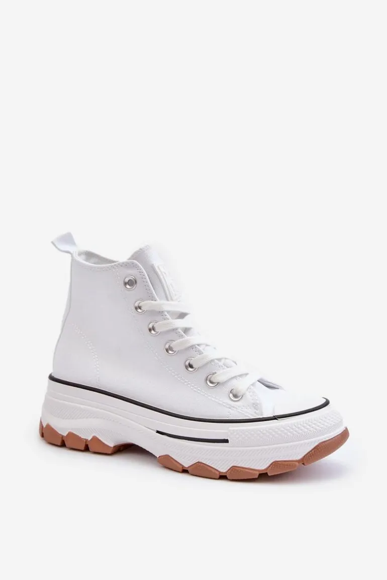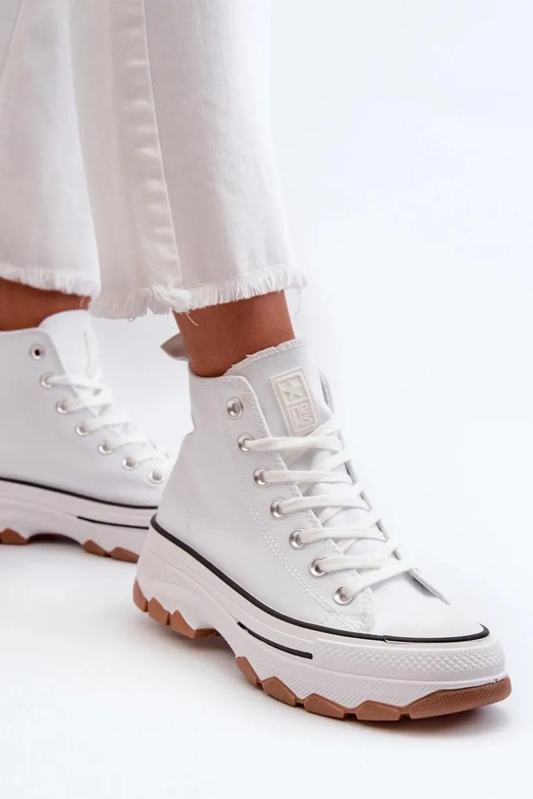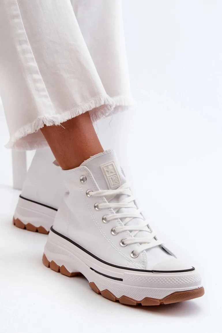 Wysokie trampki damskie na platformie to doskonały wybór dla modnych kobiet. Podwyższona podeszwa dodaje nie tylko centymetrów, ale także oryginalnego wyglądu każdej stylizacji. Wykonane z materiału tekstylnego. Model ten to must-have dla każdej kobiety, która chce połączyć komfort z modnym wyglądem. Przy wyborze rozmiaru prosimy sugerować się tabelą rozmiarów.