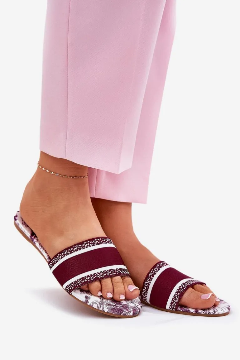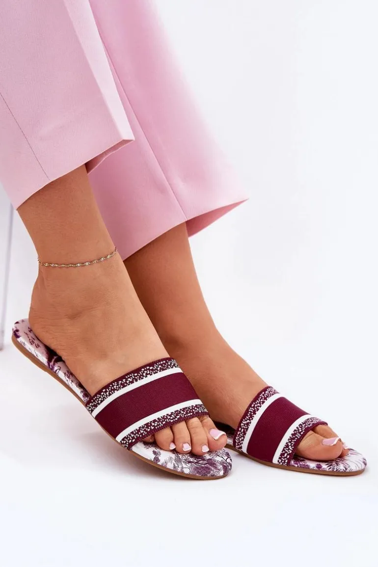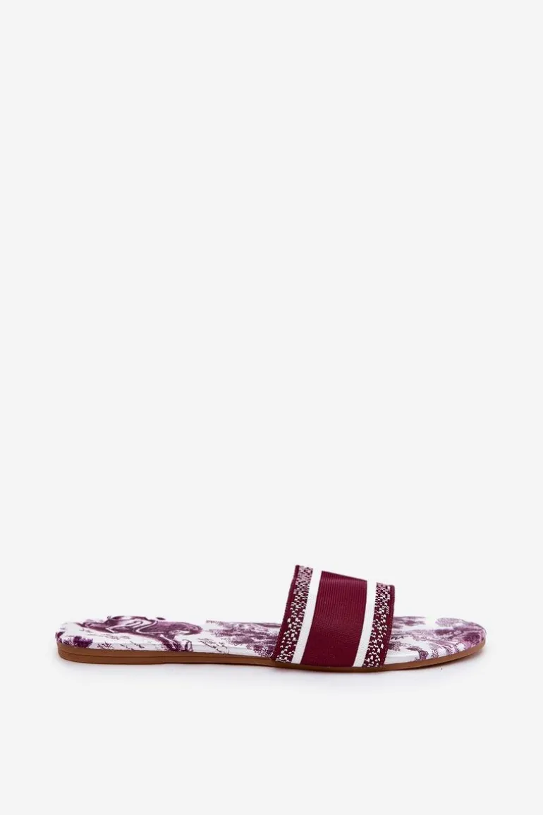 Wzorzyste Płaskie Klapki Damskie Bordowe Leysi