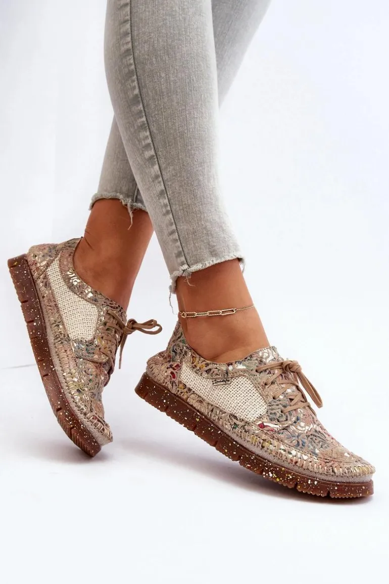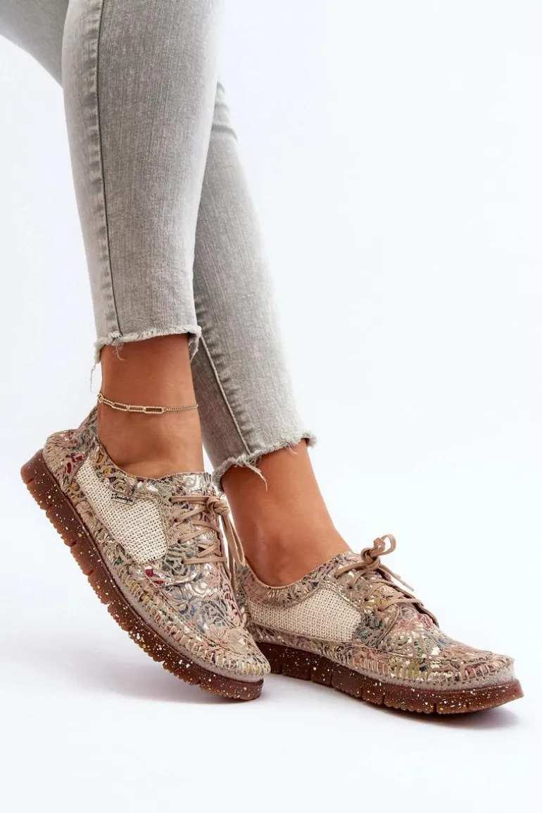 Półbuty damskie od polskiej marki Maciejka z uroczym zdobieniem na cholewce. Wykonane z miękkiej skóry naturalnej i tkaniny, prezentują się niezwykle efektownie. Zaokrąglone dodają delikatności, a klasyczne sznurowanie zapewnia idealne dopasowanie do stopy. Te półbuty nie tylko podkreślą Twój indywidualny styl, ale także zapewnią komfort noszenia na każdym kroku! Przy wyborze rozmiaru prosimy sugerować się tabelą rozmiarów.
