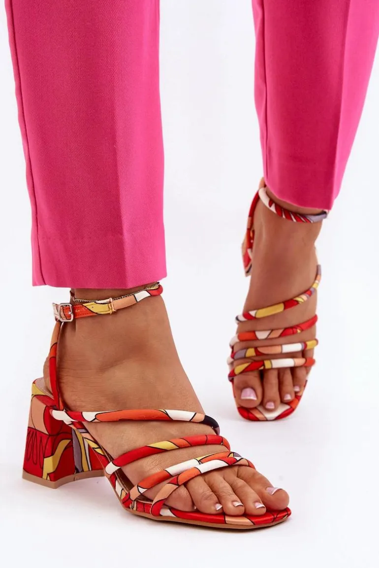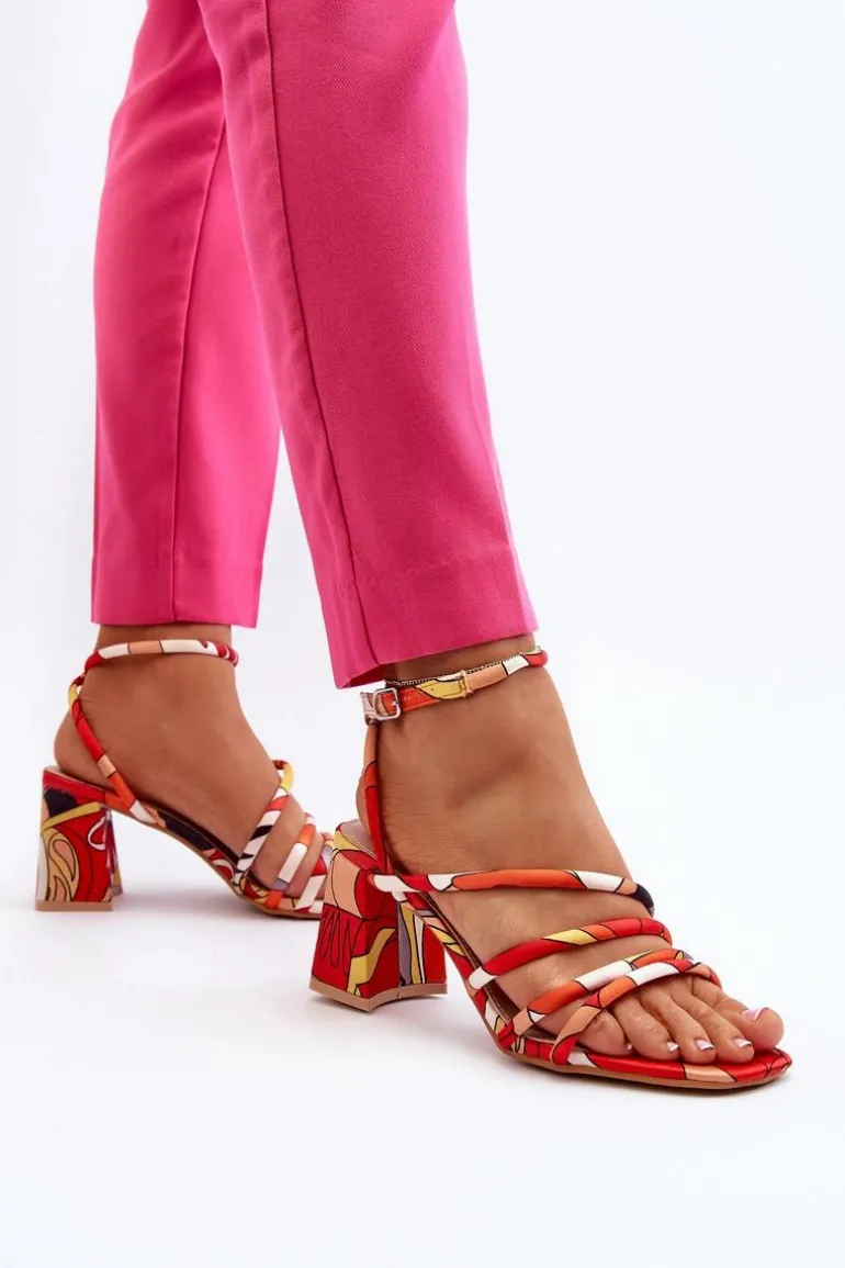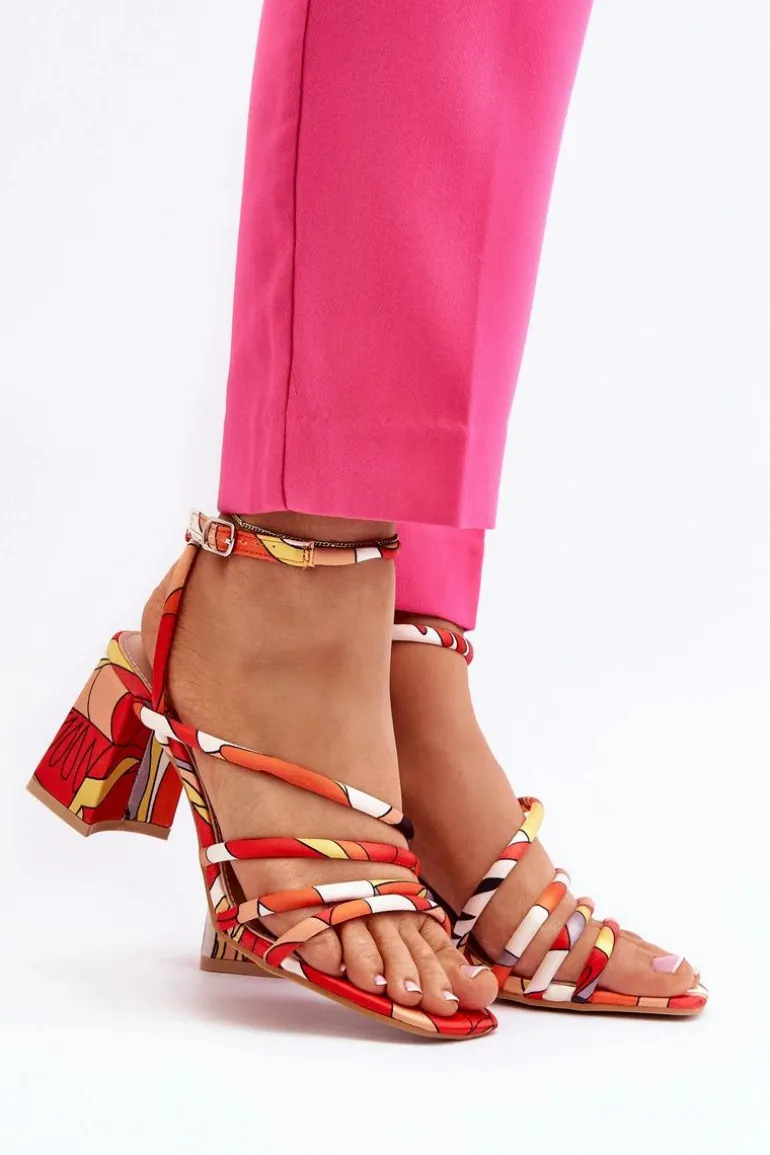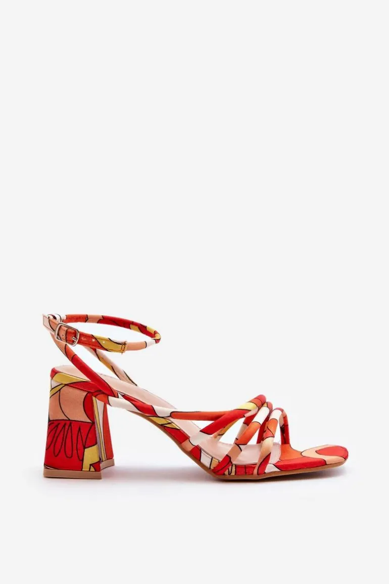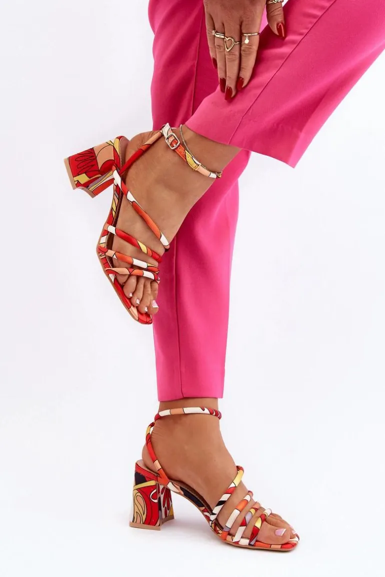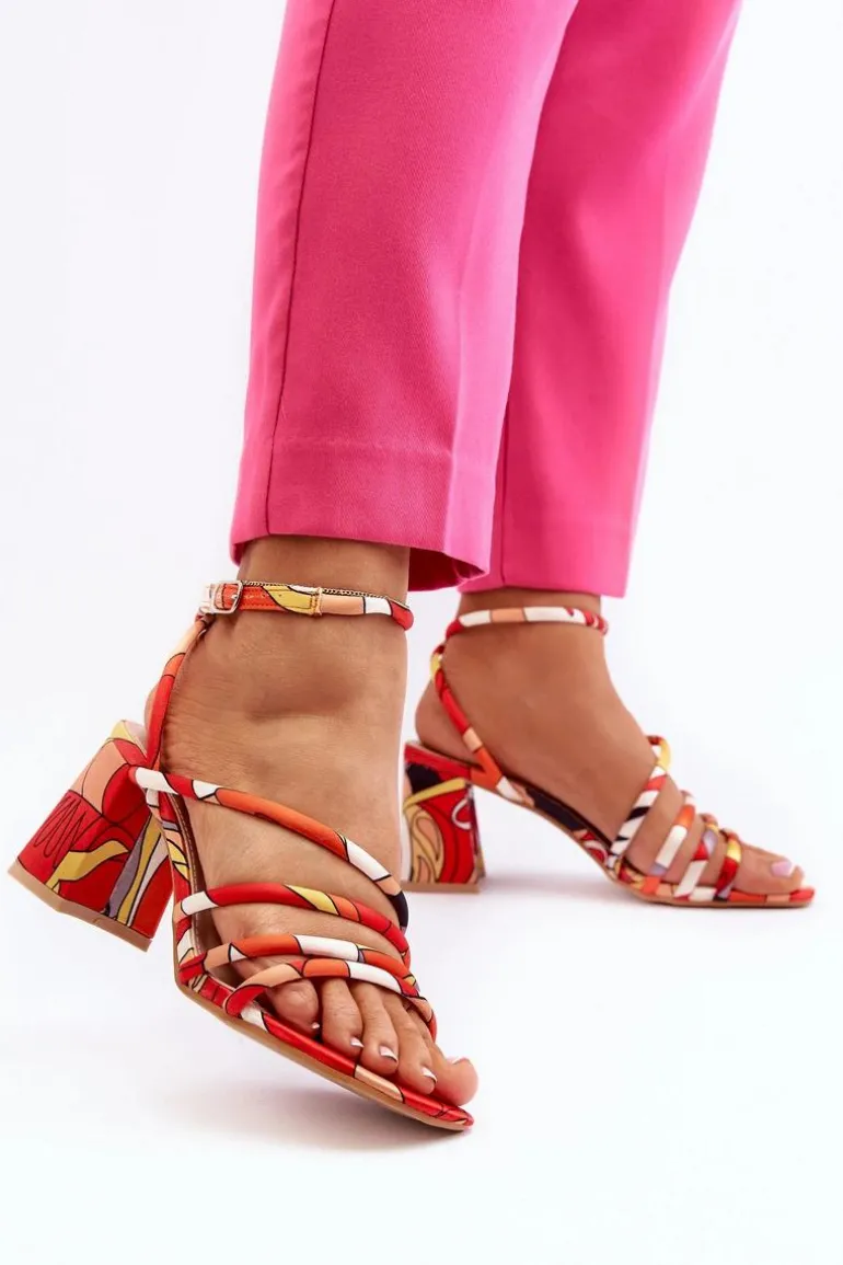 Wzorzyste Sandały Na Słupku Pomarańczowe Jenglla