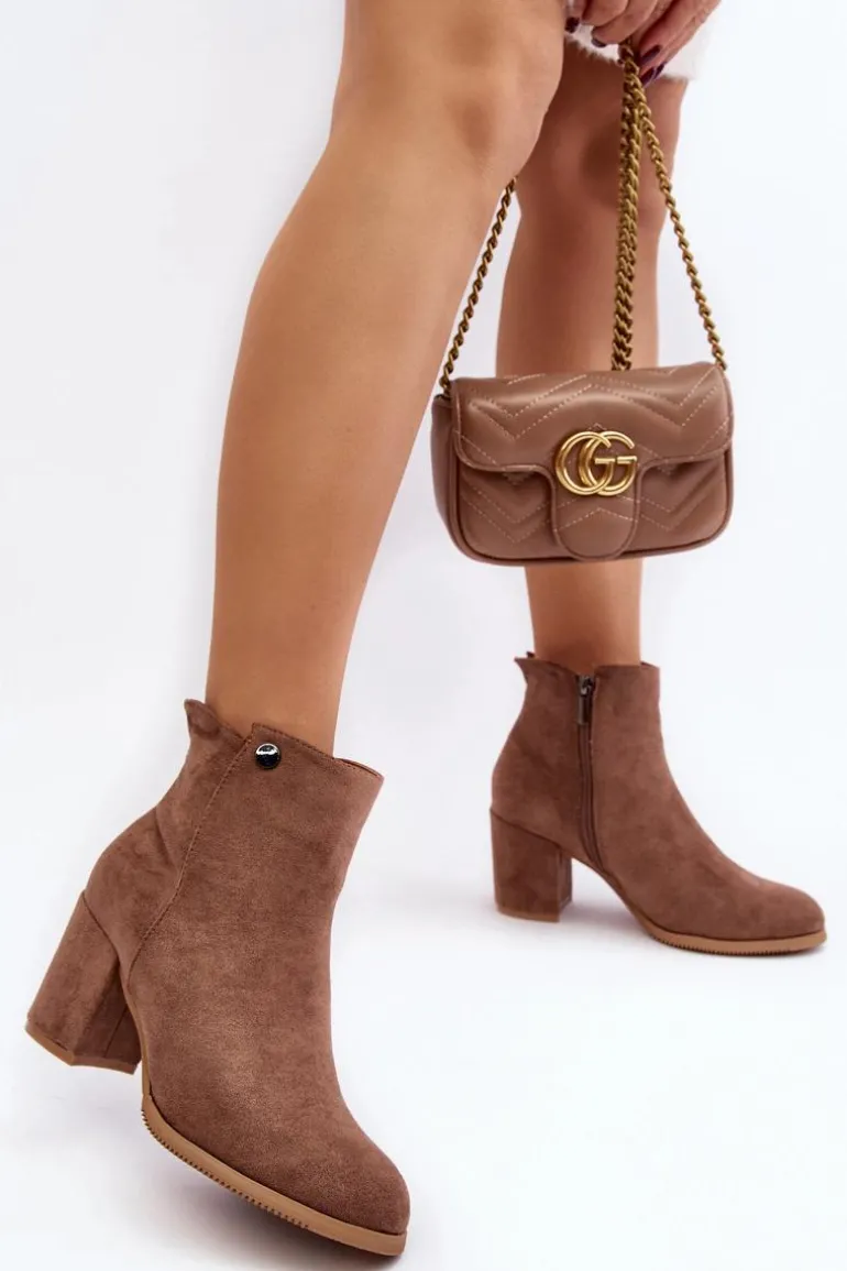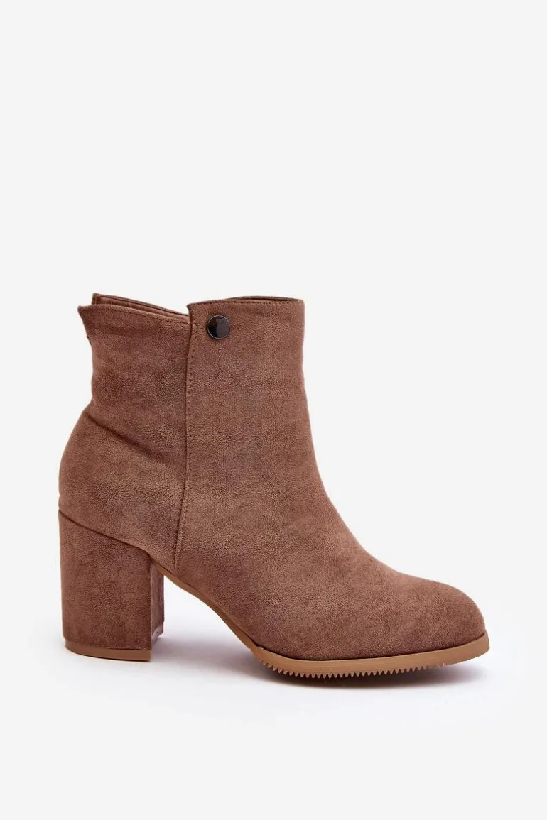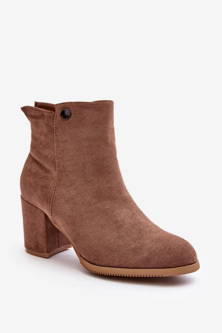 Klasyczne botki damskie na obcasie słupku. Wykonane z eko zamszu. Cholewka za kostkę. Środek ocieplony miłym w dotyku kocem obuwniczym. Noski zaokrąglone. Zapinane na zamek. Dodatkowo model ten posiada usztywniony zapiętek. Będą pasować do spodni, spódnic czy sukienek. Koniecznie powinnaś je mieć! Przy wyborze rozmiaru prosimy sugerować się tabelą rozmiarów.