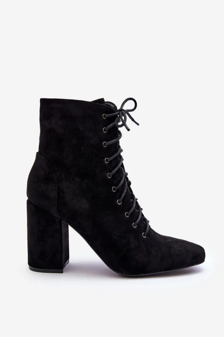 Klasyczne damskie botki zostały wykonane z eko zamszu. Osadzone na obcasie w postaci słupka. Buty te posiadają usztywniany zapiętek. Zapinane są na zamek i posiadają dodatkowe sznurowanie co umożliwia lepsze dopasowanie buta do tęgości nogi. Przy wyborze rozmiaru prosimy sugerować się tabelą rozmiarów.