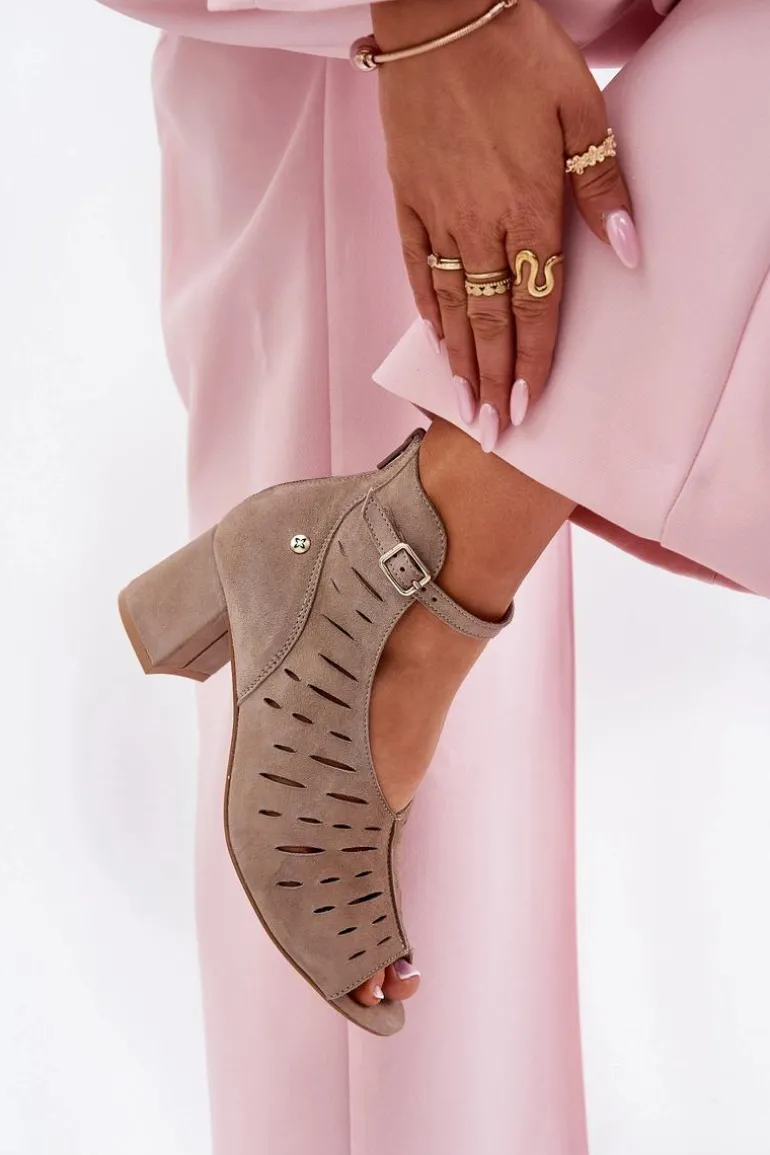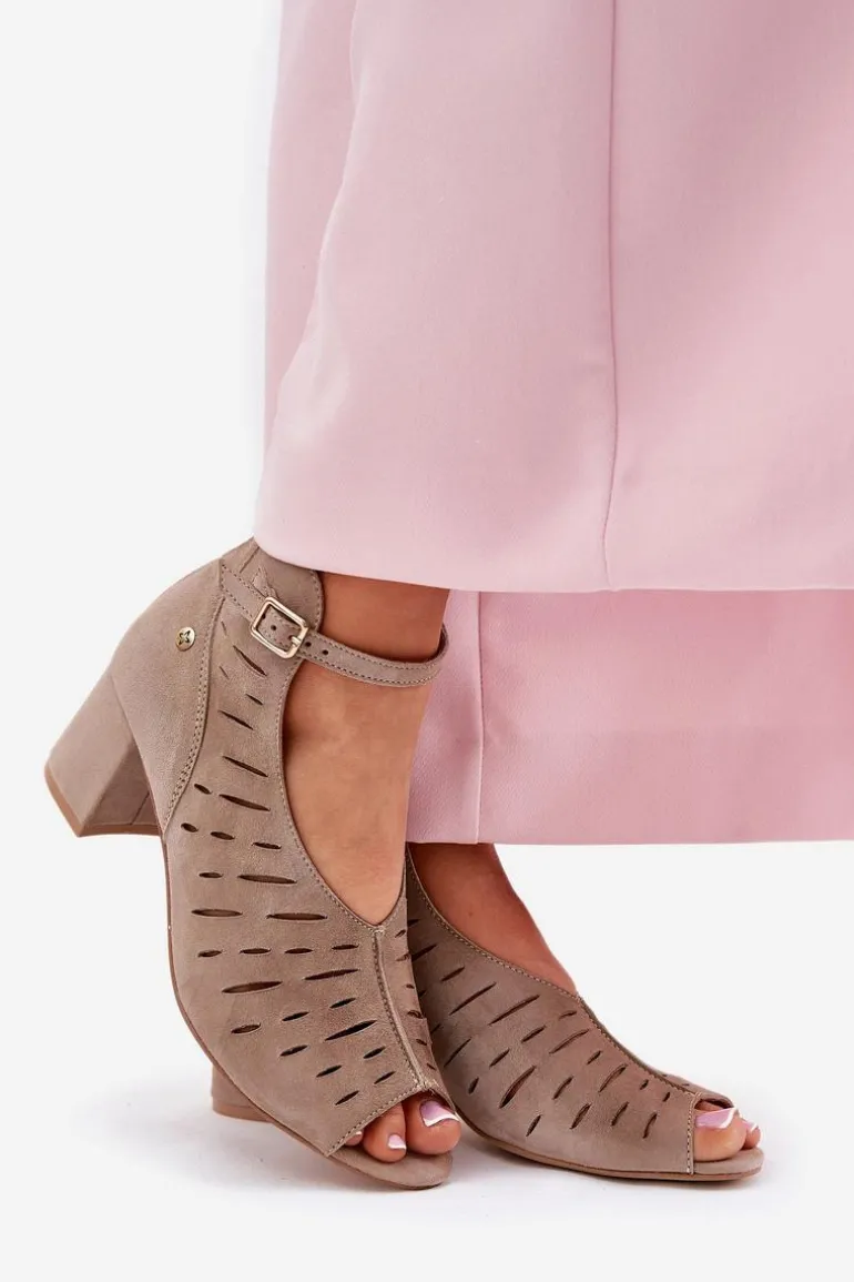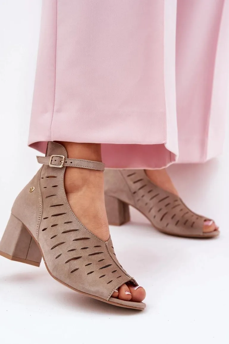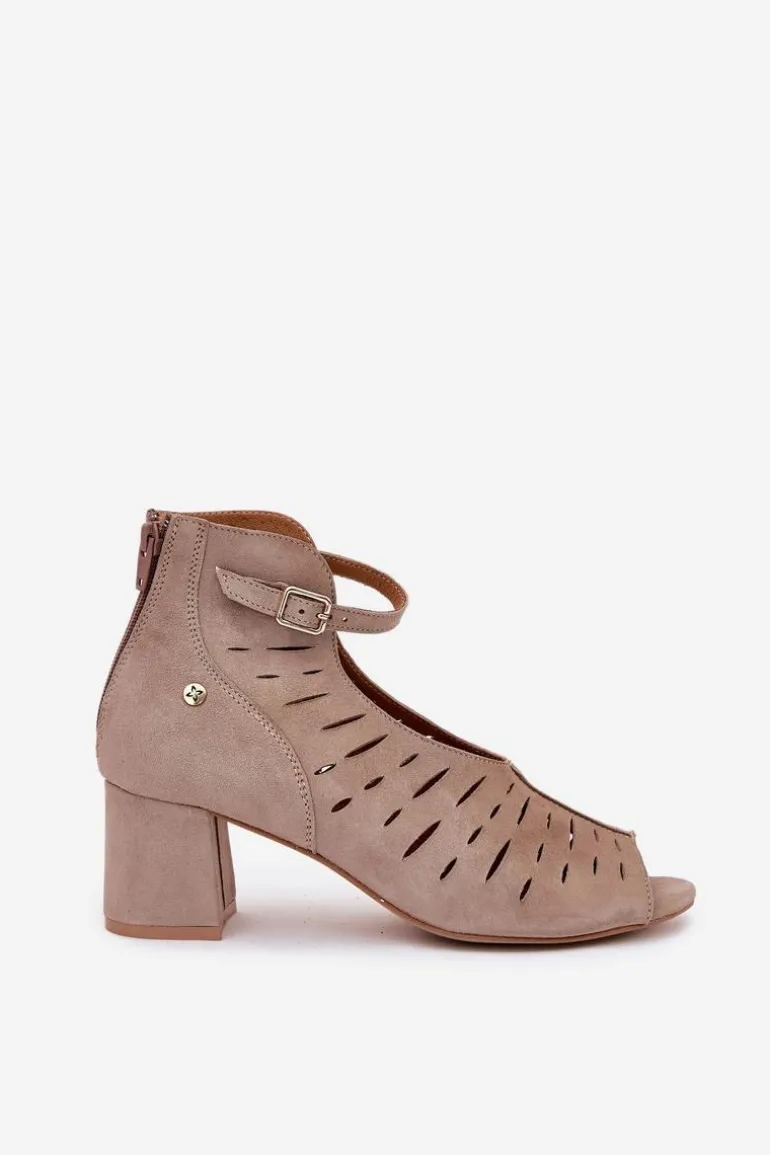 Zamszowe Botki Damskie Na Słupku Maciejka 06893-10 Ciemnobeżowe