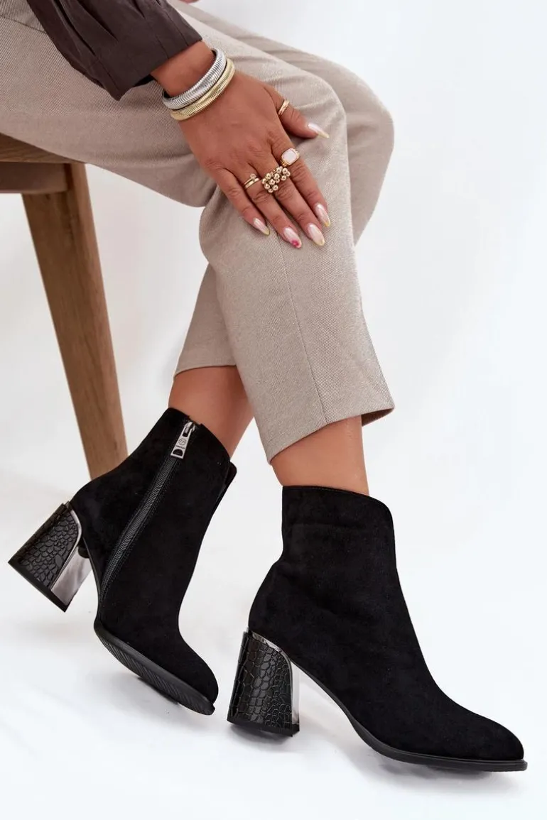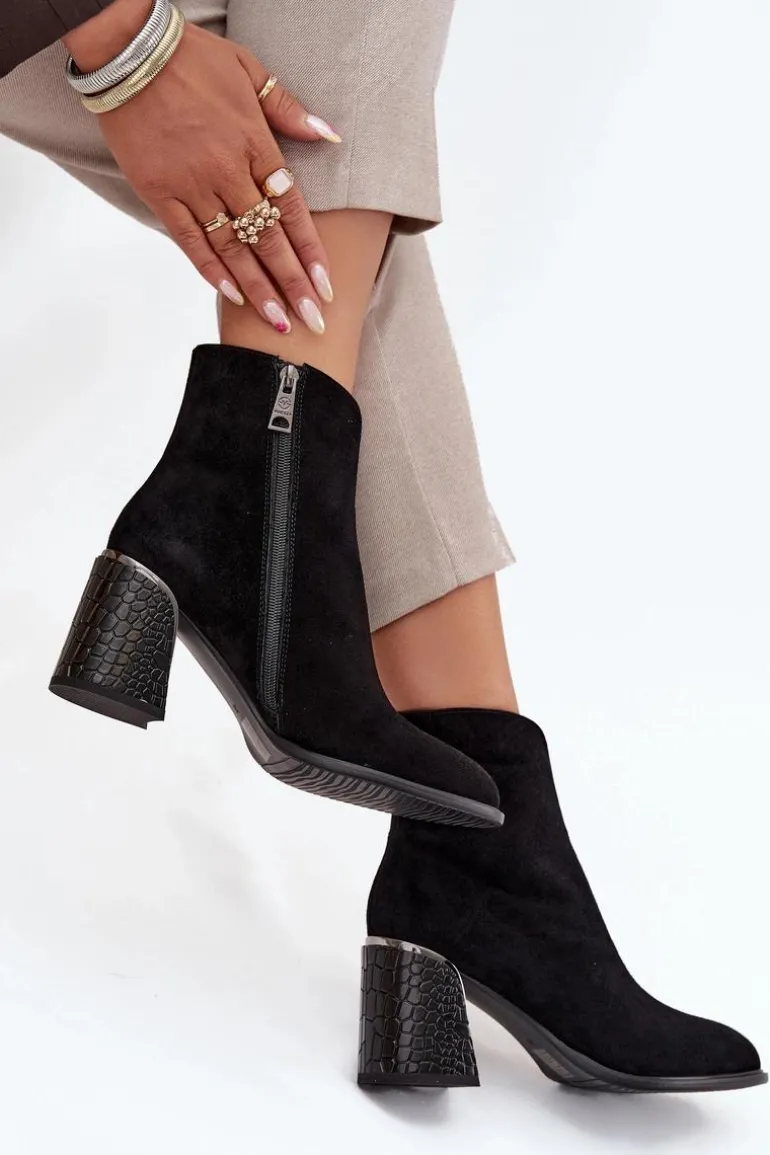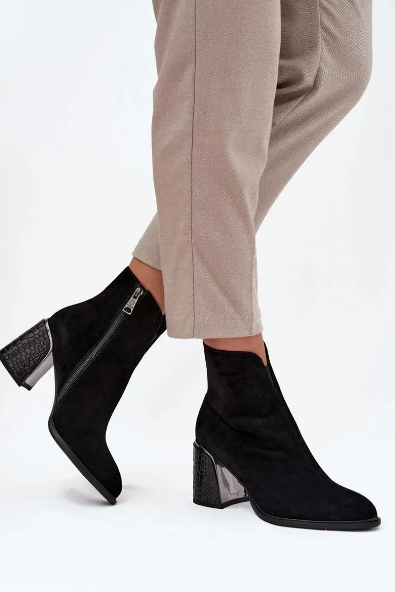 Botki damskie Vinceza wykonane z naturalnego zamszu to połączenie elegancji i nowoczesnego stylu. Osadzone na obcasie typu słupek, który wyróżnia się subtelnym tłoczeniem i lustrzanym elementem. Noski w kształcie migdała podkreślają kobiecy wygląd, a zamek ułatwia szybkie zakładanie. Ocieplane wnętrze zapewnia komfort i ciepło w chłodniejsze dni, co czyni je idealnym wyborem na jesień i zimę. Przy wyborze rozmiaru prosimy sugerować się tabelą rozmiarów.
