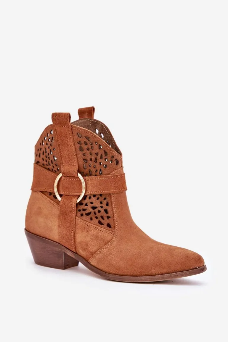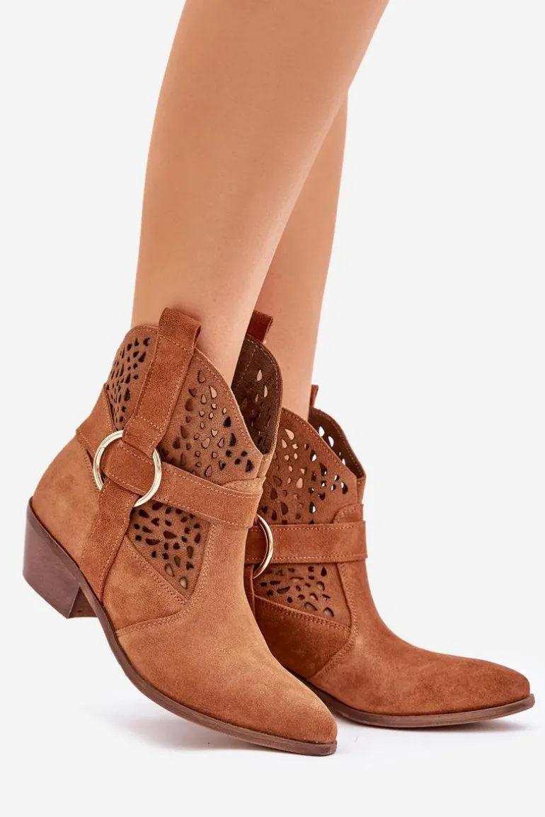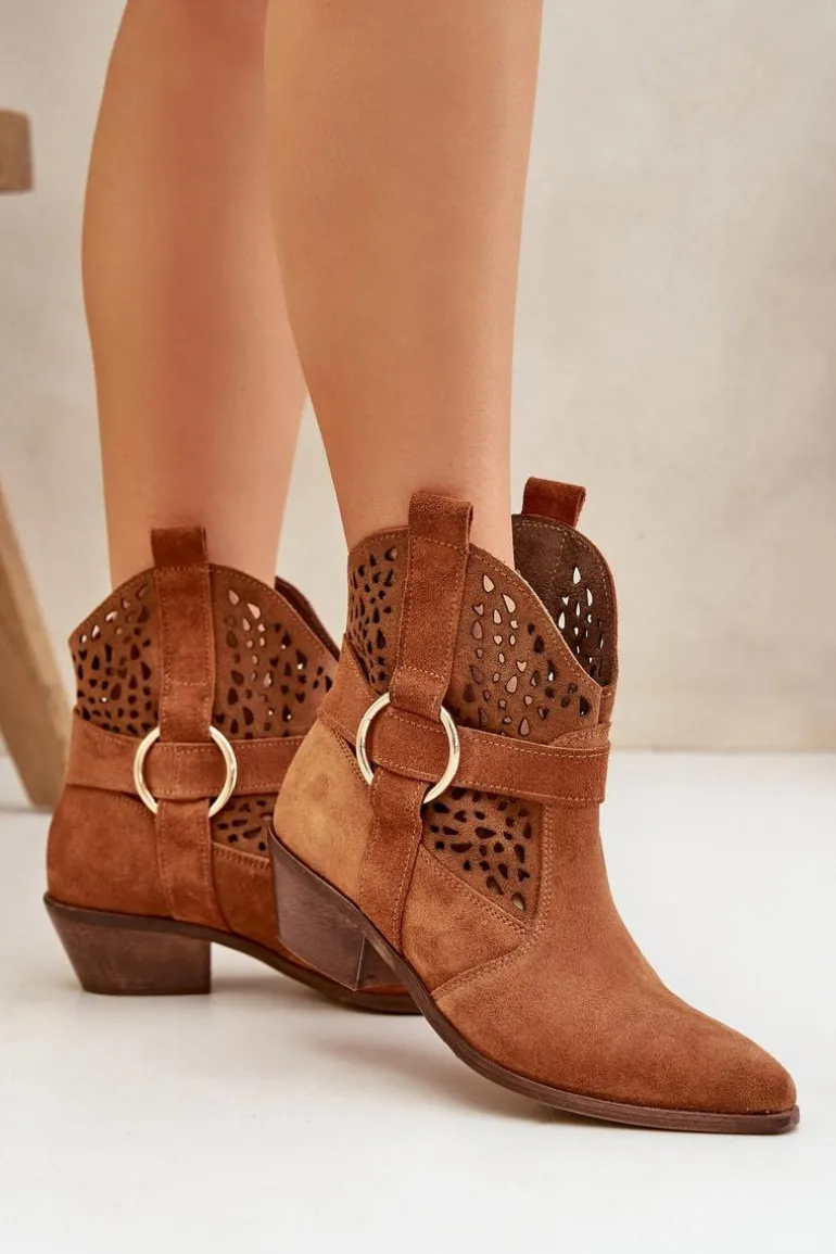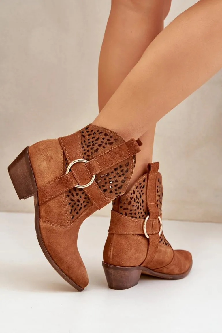 Stylowe i eleganckie botki damskie wykonane z naturalnego zamszu, które doskonale łączą modny wygląd z wygodą użytkowania. Model osadzony na niskim obcasie, idealny na co dzień i do bardziej formalnych stylizacji. Ażurowa cholewka ozdobiona delikatnym akcentem nadaje im wyjątkowego charakteru. Szpiczaste noski optycznie wysmuklają stopę, dodając szyku każdemu zestawowi. To doskonały wybór dla kobiet ceniących jakość, styl i komfort. Przy wyborze rozmiaru prosimy sugerować się tabelą rozmiarów.