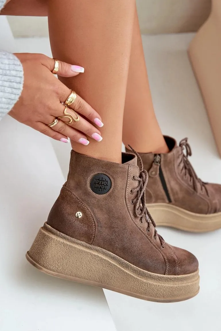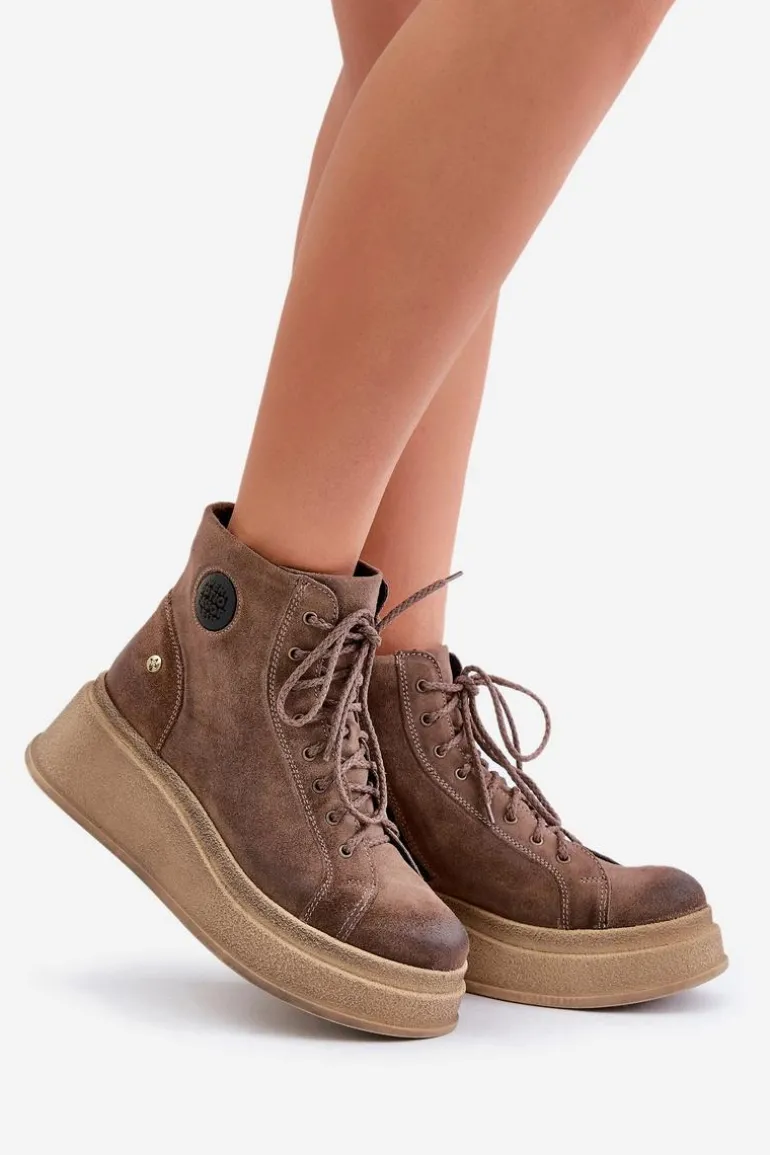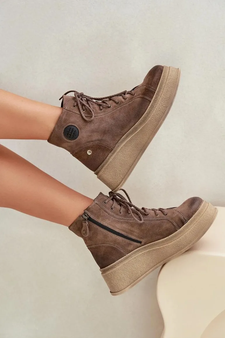 Botki damskie marki Maciejka wykonane są z najwyższej jakości skóry naturalnej. Osadzone na masywnej platformie oraz płaskim obcasie. Zapinane na suwak po wewnętrznej stronie cholewki i dodatkowo sznurowane. Miękka wkładka zapewni komfortowe użytkowanie obuwia. Zapiętek jest usztywniany. Przy wyborze rozmiaru prosimy sugerować się tabelą rozmiarów.
