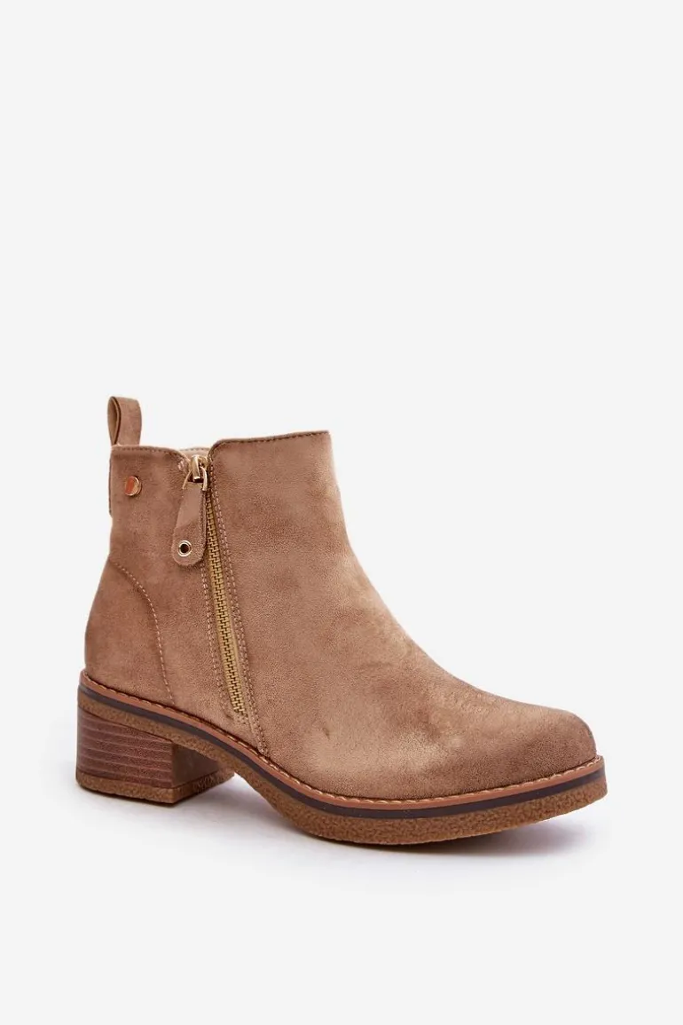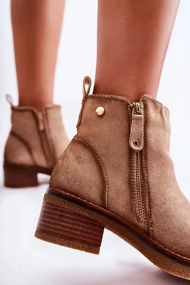 Zamszowe Botki Na Niskim Słupku Beżowe Laurisa