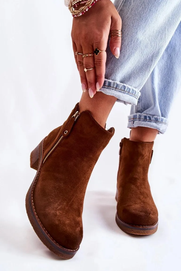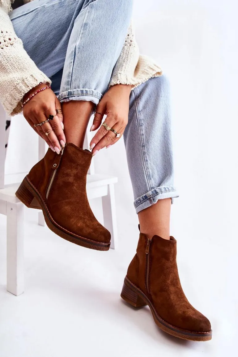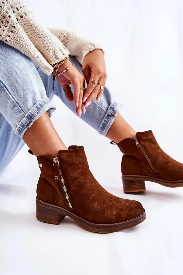 Zamszowe Botki Na Niskim Słupku Brązowe Laurisa