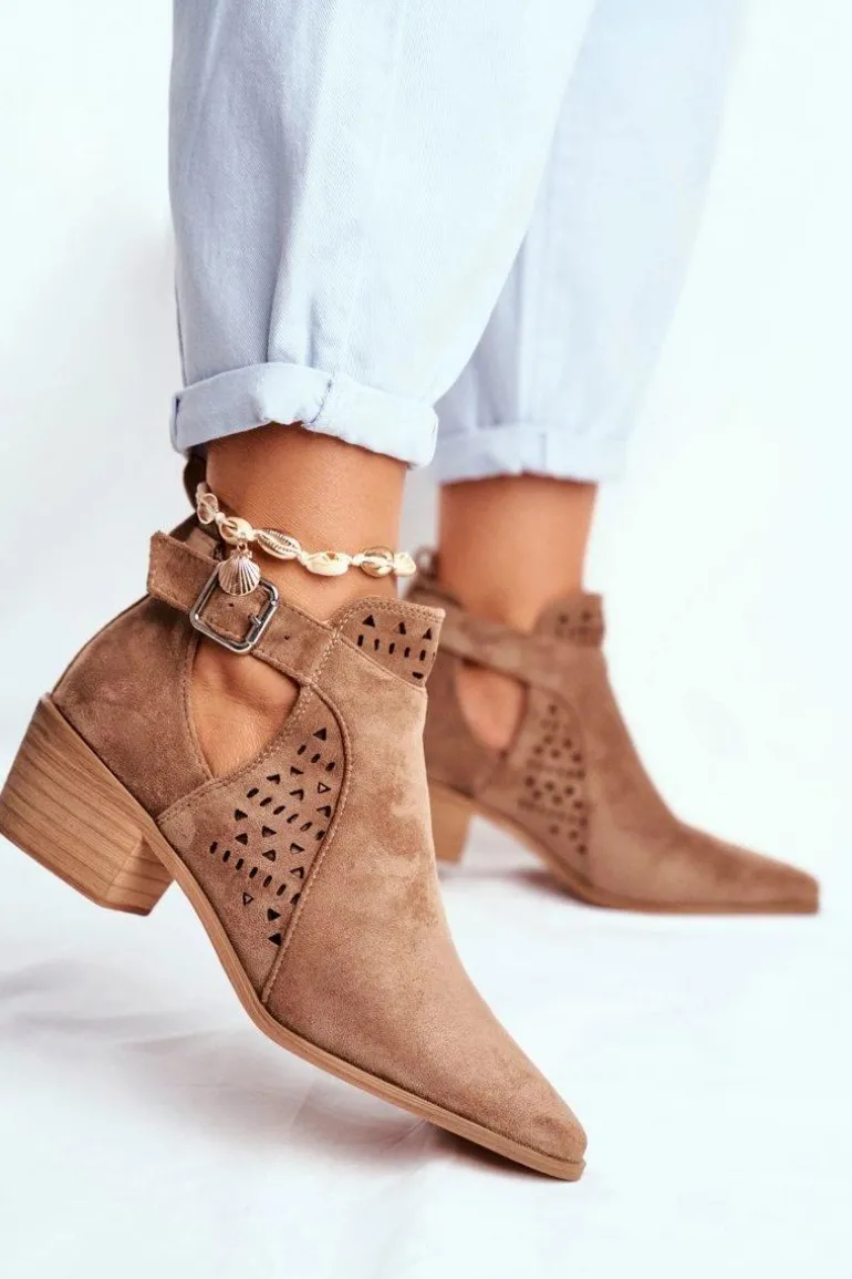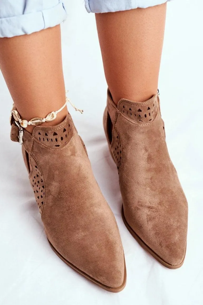 Piękne botki z noskiem w szpic wykonane z eko zamszu. Przy wyborze rozmiaru prosimy sugerować się tabelą rozmiarów.