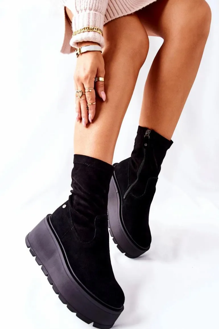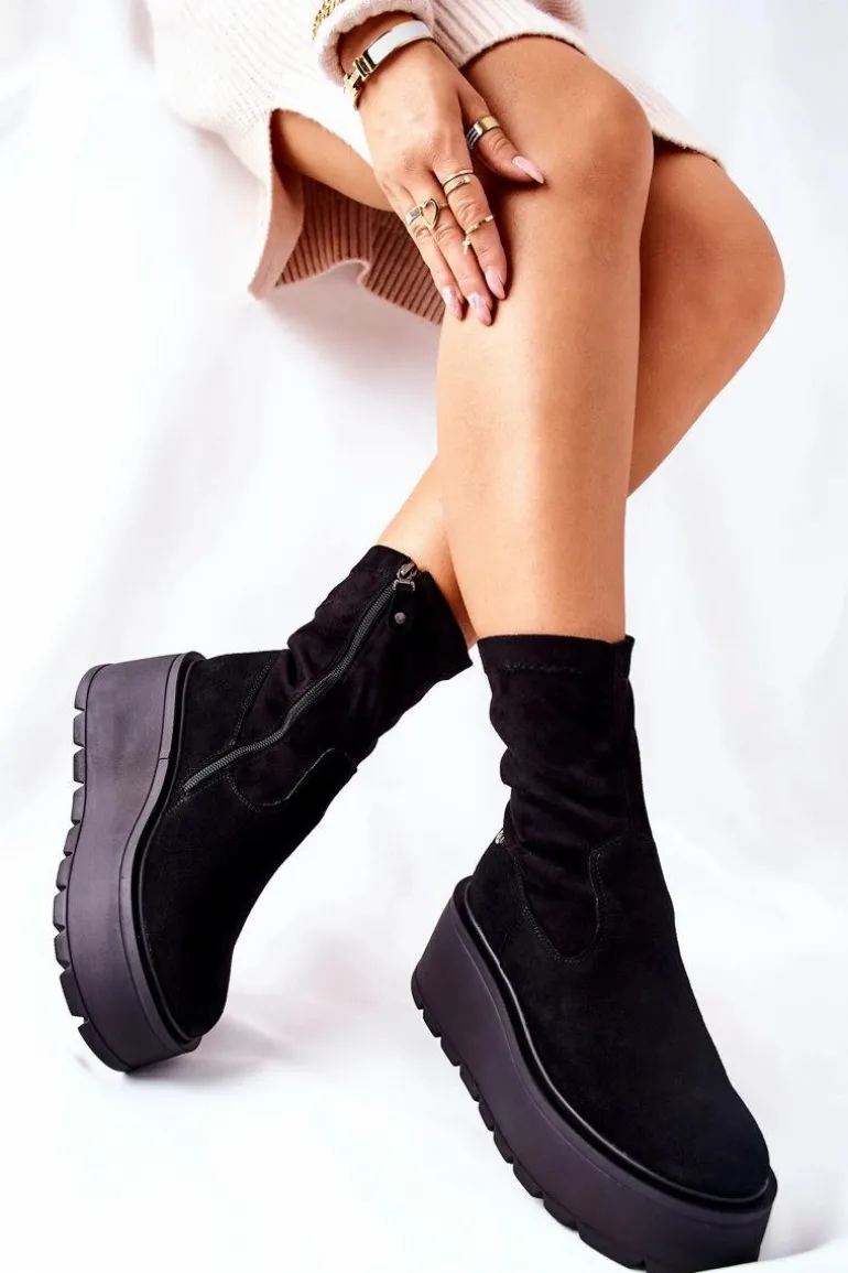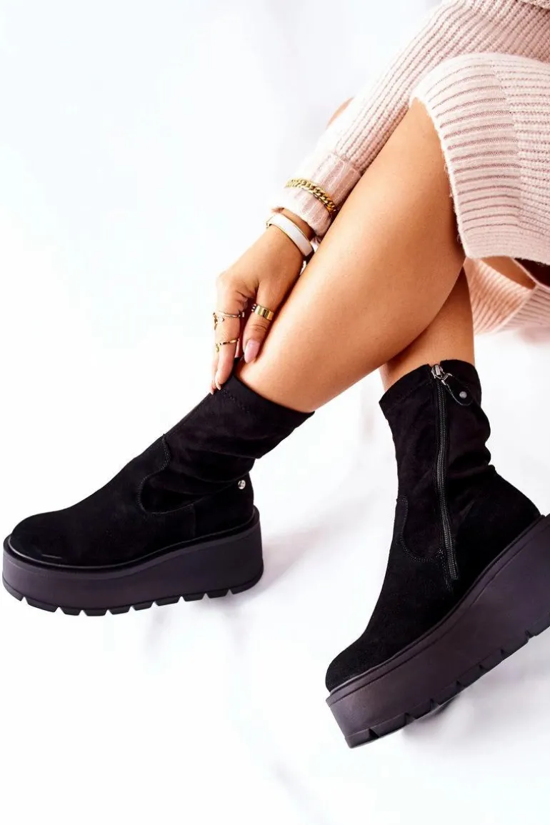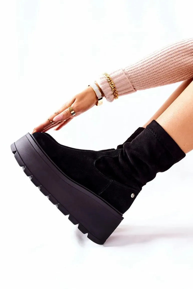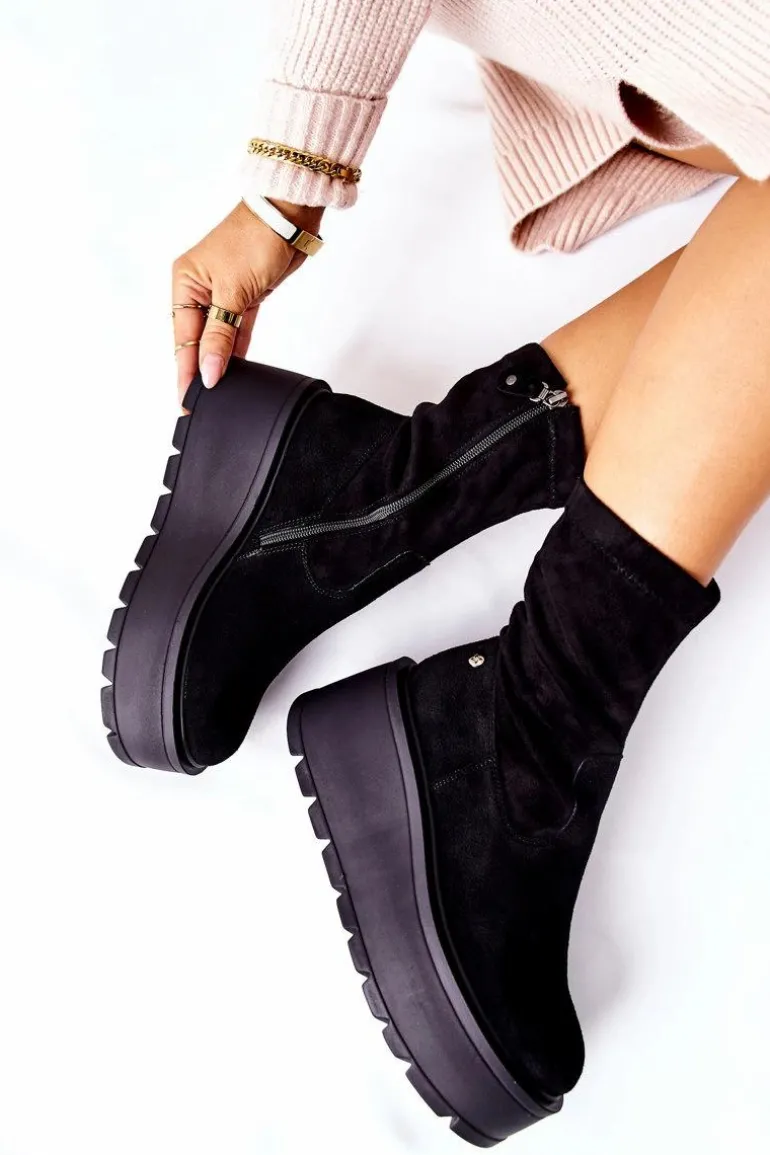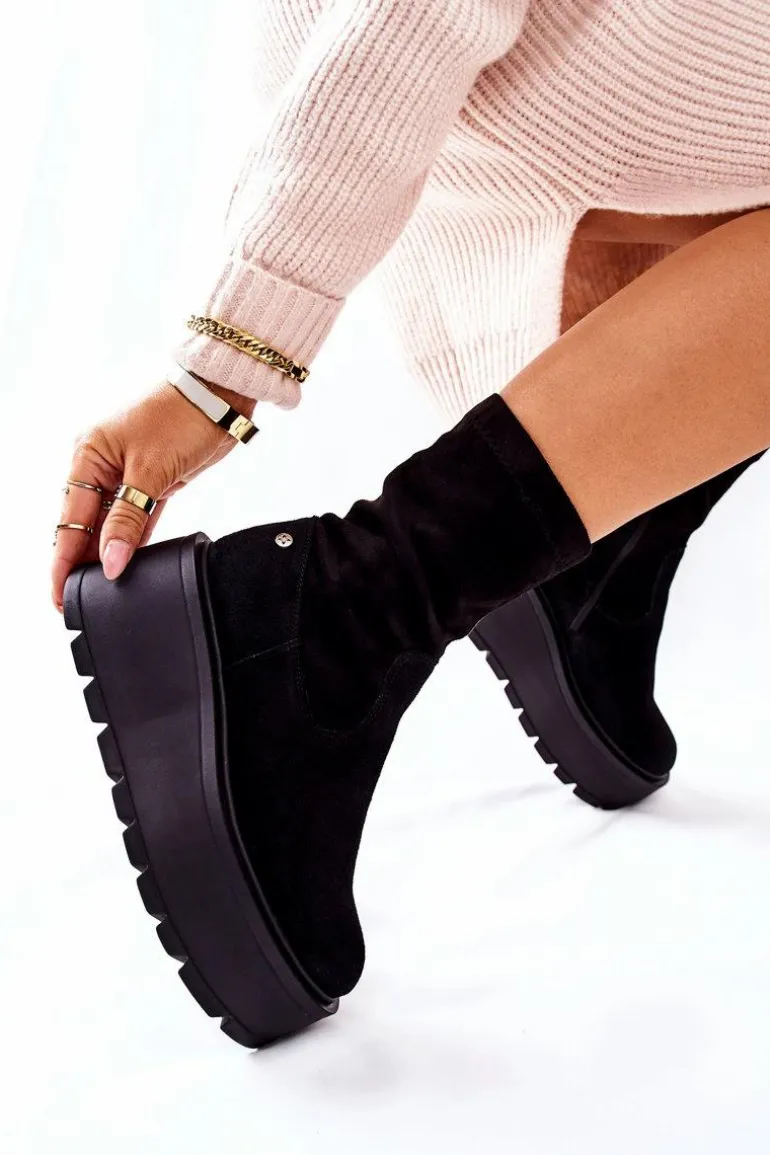 Zamszowe Botki Na Platformie Maciejka Czarne 05319-01