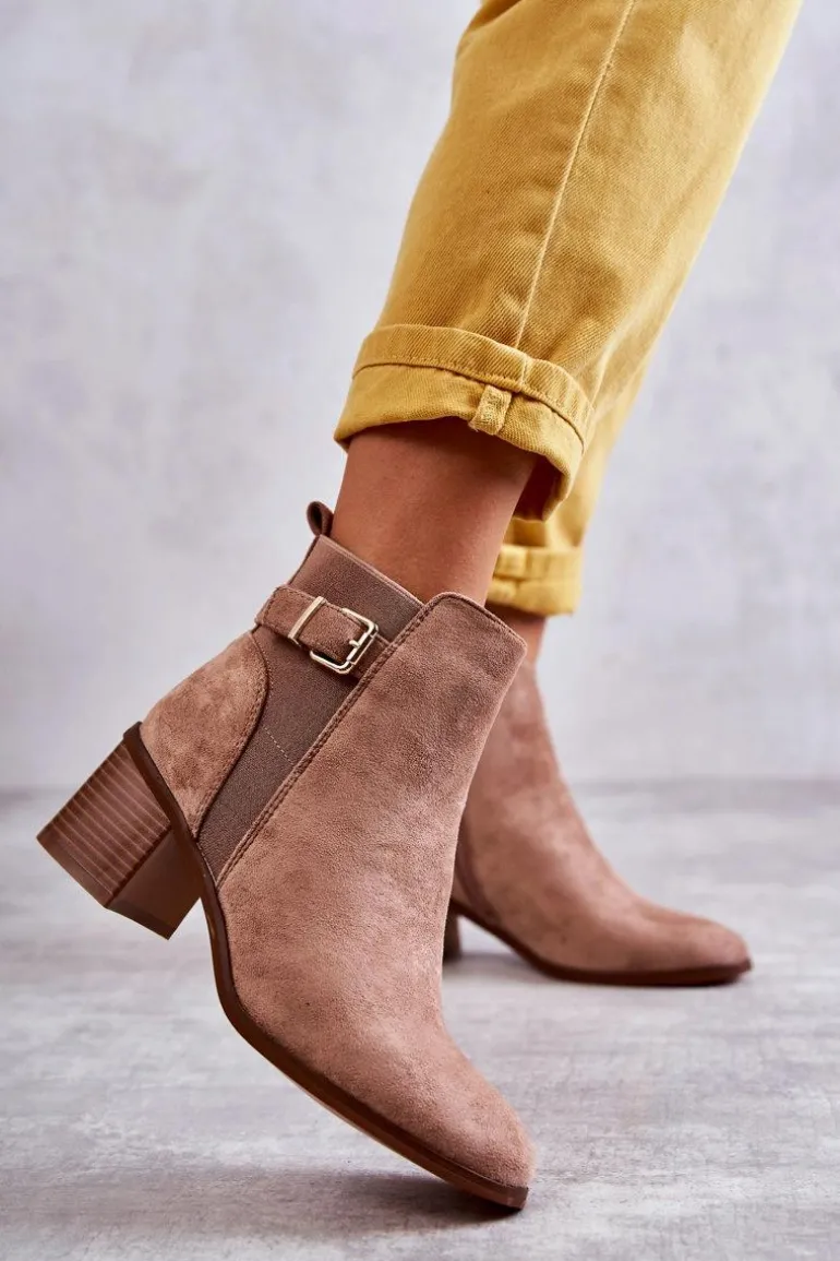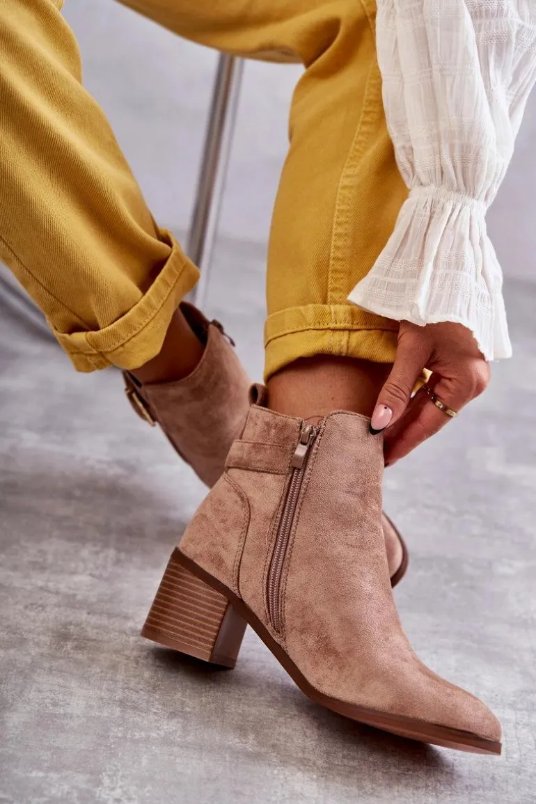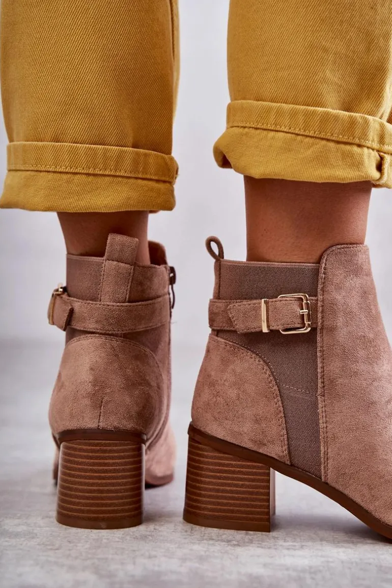 Zamszowe Botki Na Słupku Brązowe Vannes