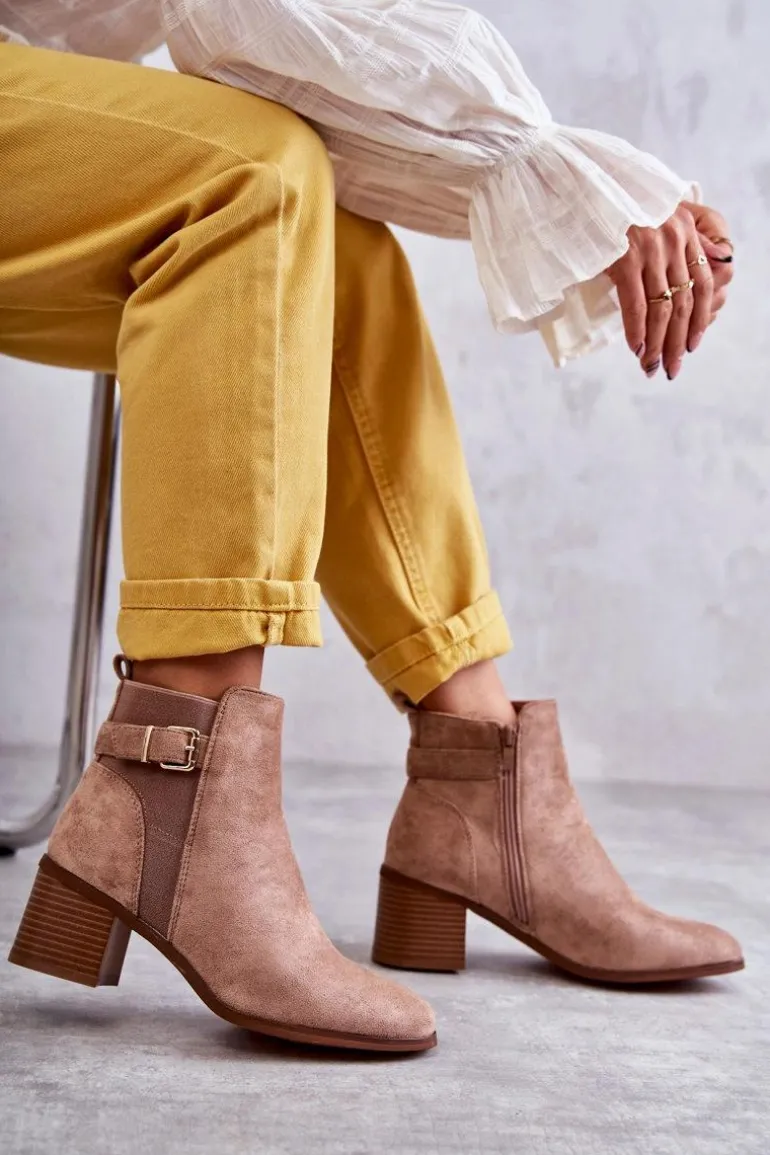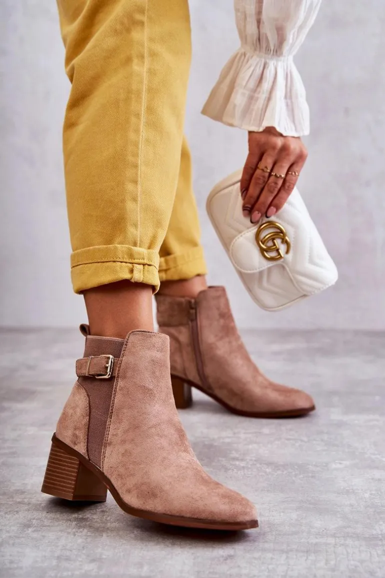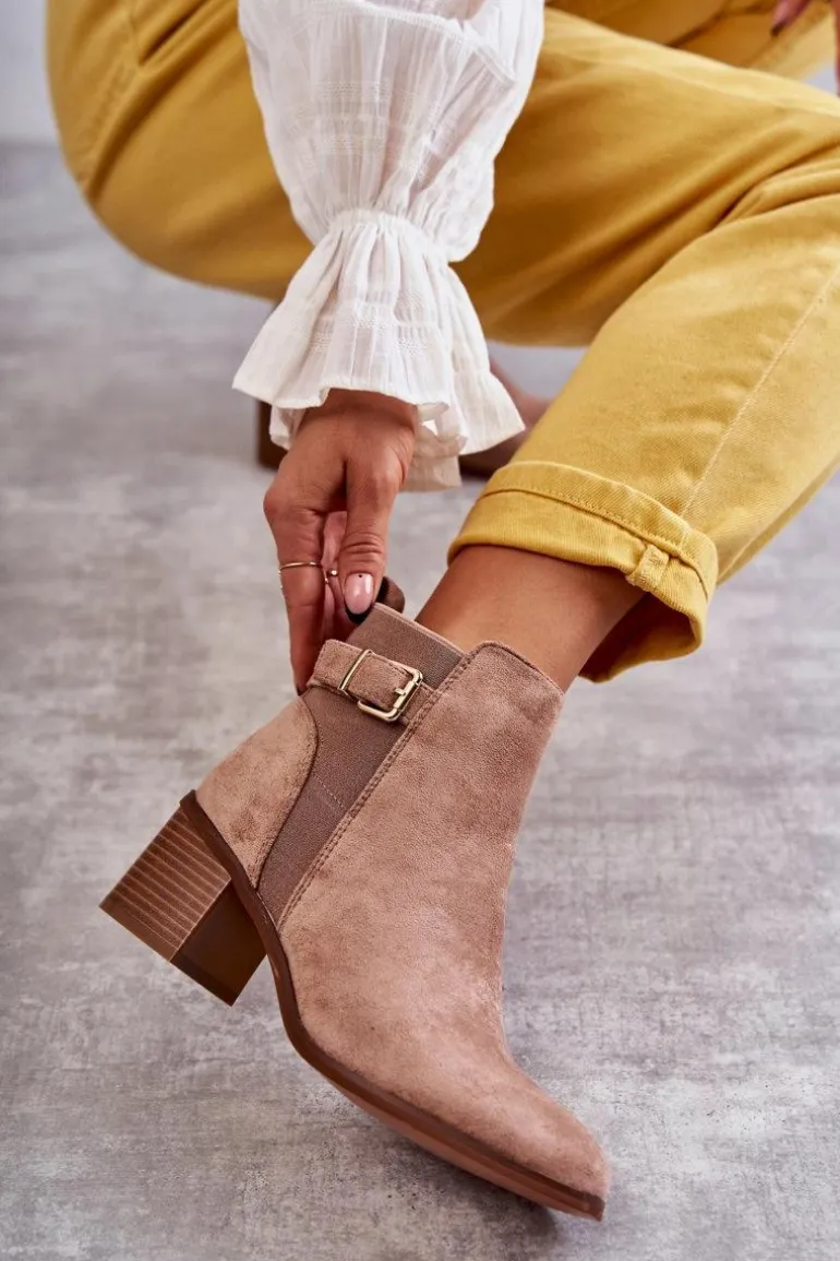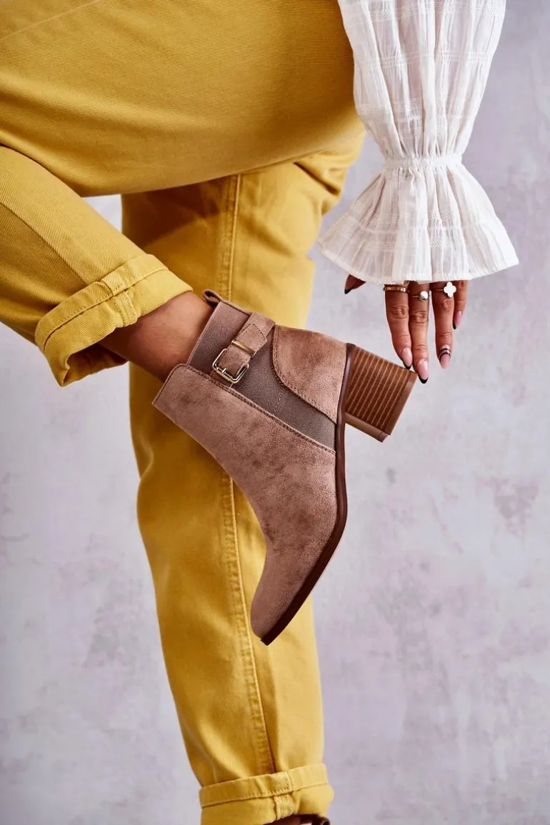 Zamszowe Botki Na Słupku Brązowe Vannes
