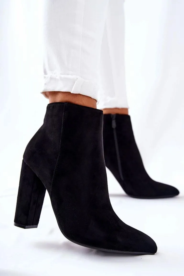Botki na wysokim słupku wykonane zostały z eko-zamszu. Wnętrze ocieplone miłym w dotyku kocem obuwniczym z krótkim włosiem. Zapinane na zamek po wewnętrznej stronie cholewki. Piękne i klasyczne botki będą pasować zarówno do spodni jak i długich spódnic. Nie czekaj i kup już teraz! Przy wyborze rozmiaru prosimy sugerować się tabelą rozmiarów.