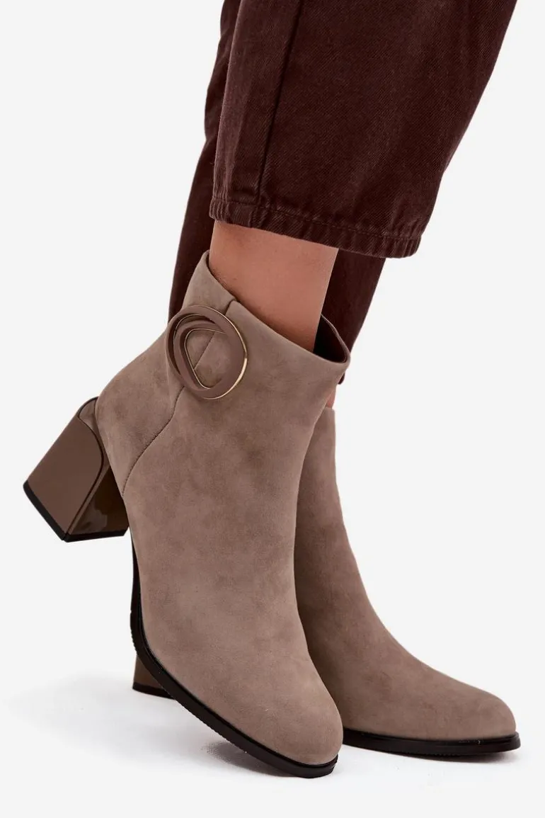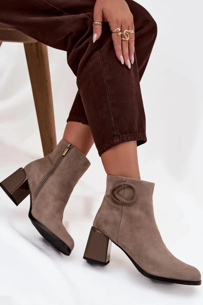 Botki damskie marki Artiker to elegancka propozycja na sezon jesienno-zimowy. Wykonane z naturalnego zamszu prezentują się szykownie i są przyjemne w dotyku, a stabilny obcas typu słupek gwarantuje wygodę oraz pewność kroku. Zaokrąglone noski. Zapięcie na zamek ułatwia zakładanie i zdejmowanie. Wnętrze zostało ocieplone. Dodatkowym atutem jest ozdobny detal umieszczony z boku cholewki, który podkreśla wyjątkowy charakter tego modelu. Przy wyborze rozmiaru prosimy sugerować się tabelą rozmiarów.