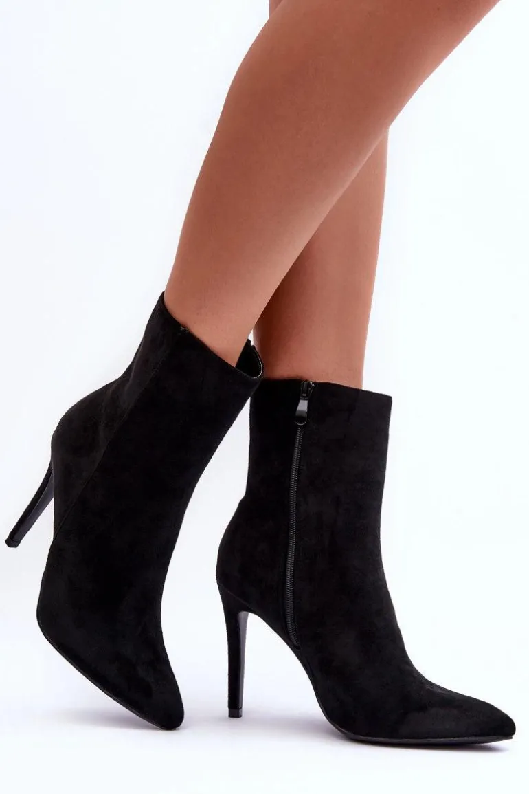 Zamszowe Botki Na Szpilce Czarne Eberpia