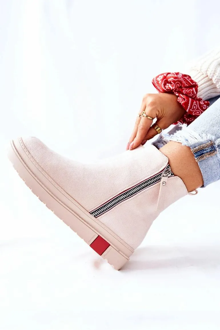 Sztyblety damskie wykonane z eko zamszu. Posiadają grubszą podeszwę, dzięki której są bardzo stabilne. Z zewnętrznej strony buta znajduje się ozdobny suwak. Natomiast z wewnętrznej suwak umożliwiający założenie obuwia. Koniecznie sprawdź pozostałe nasze modele! Przy wyborze rozmiaru prosimy sugerować się tabelą rozmiarów.