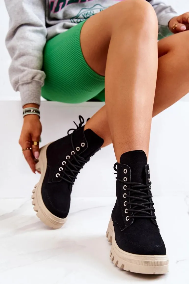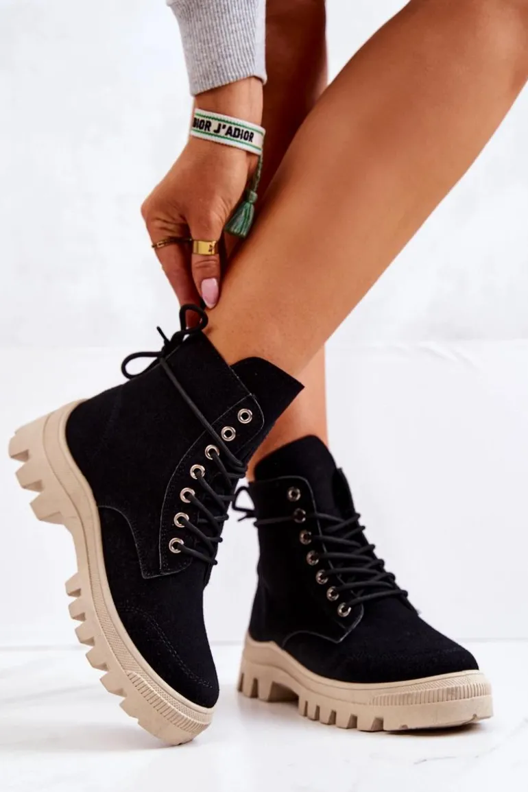 Zamszowe Botki Trapery Wiązane Czarne Hurricane