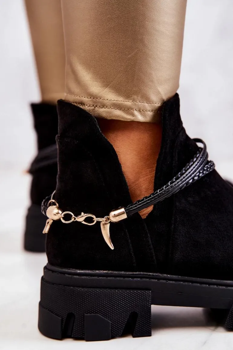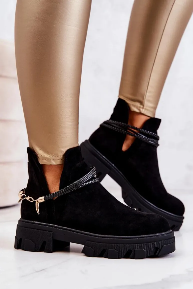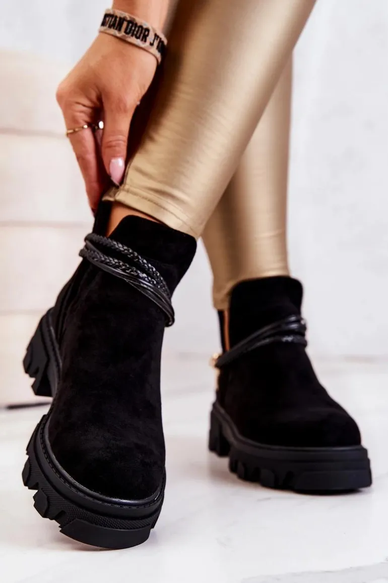 Zamszowe Botki Workery Z Paskami Czarne Moriah