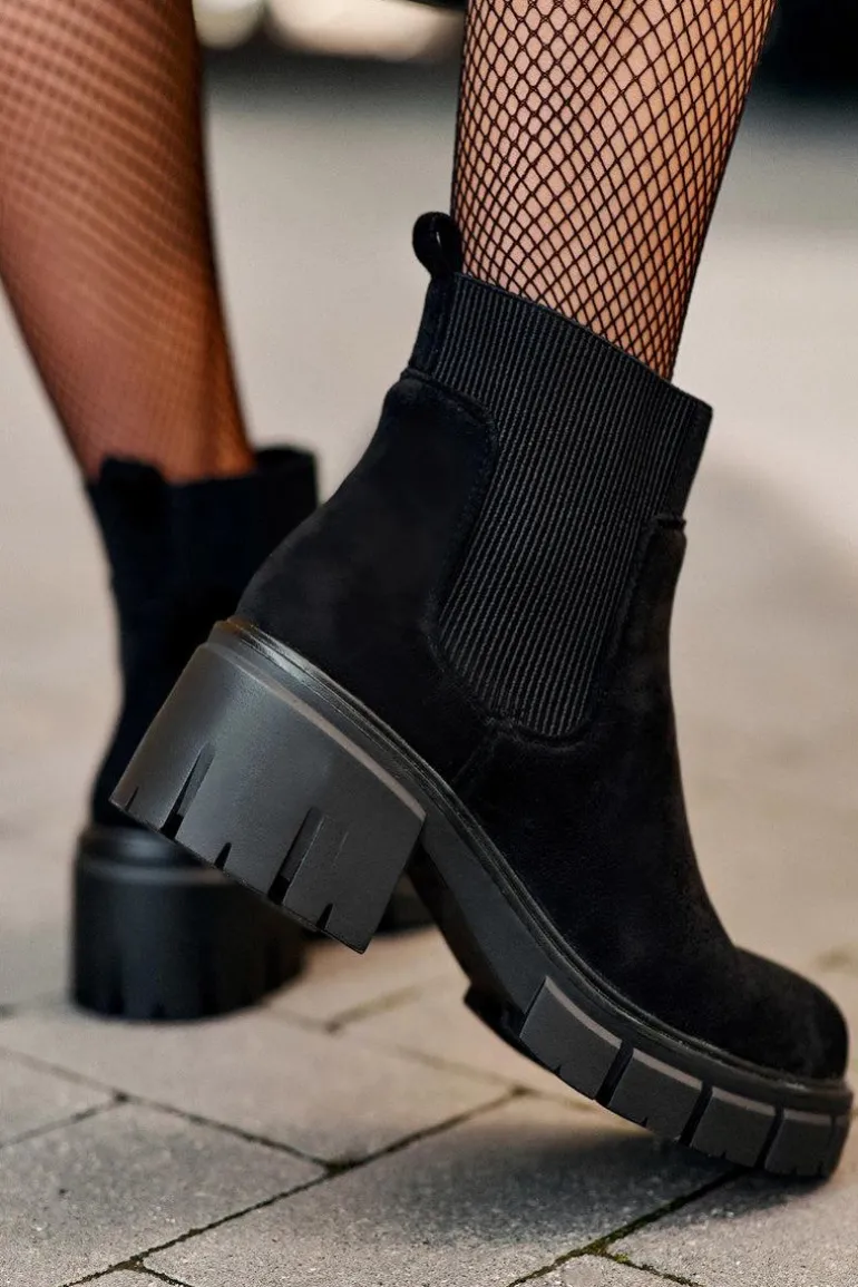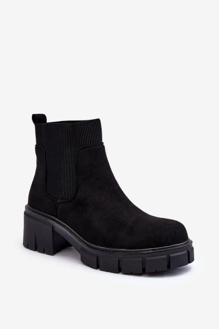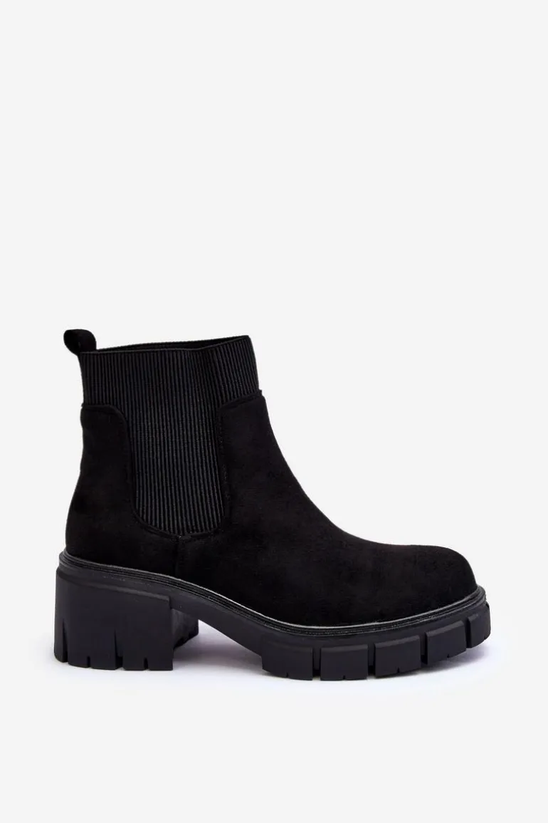 Zamszowe Botki Z Elastyczną Wstawką Czarne Anyfer