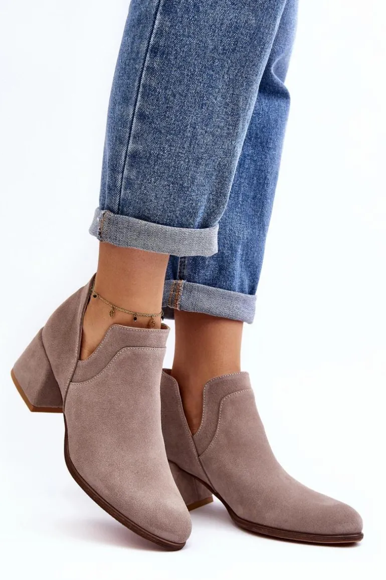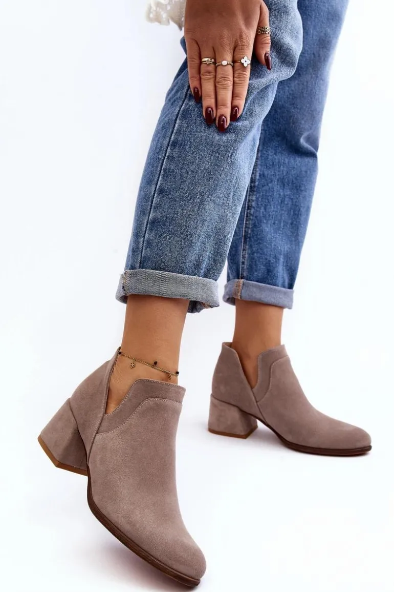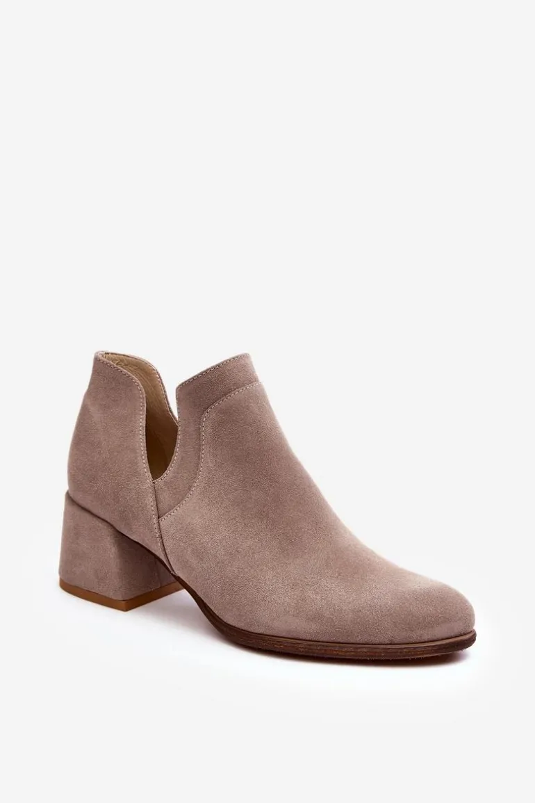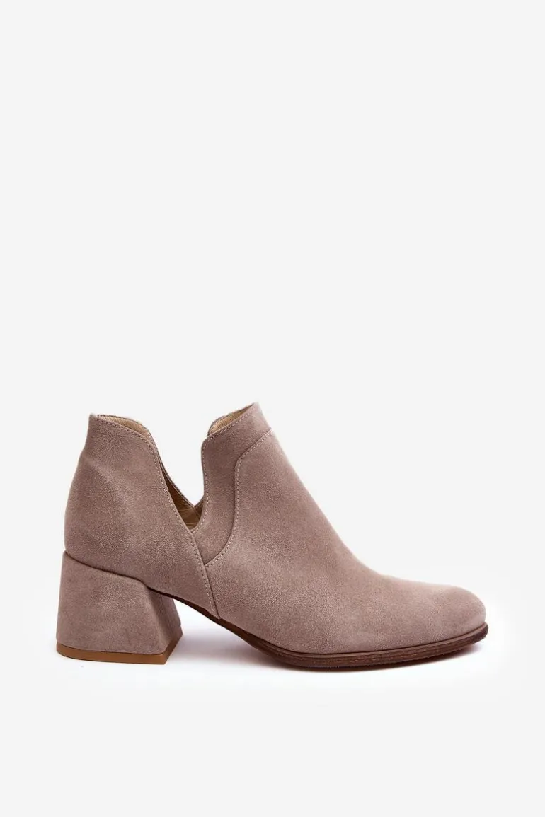 Zamszowe Botki Z Wycięciami Na Obcasie Jasnobeżowe Dalros