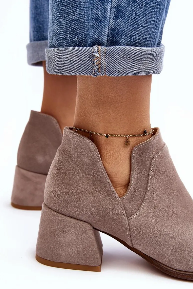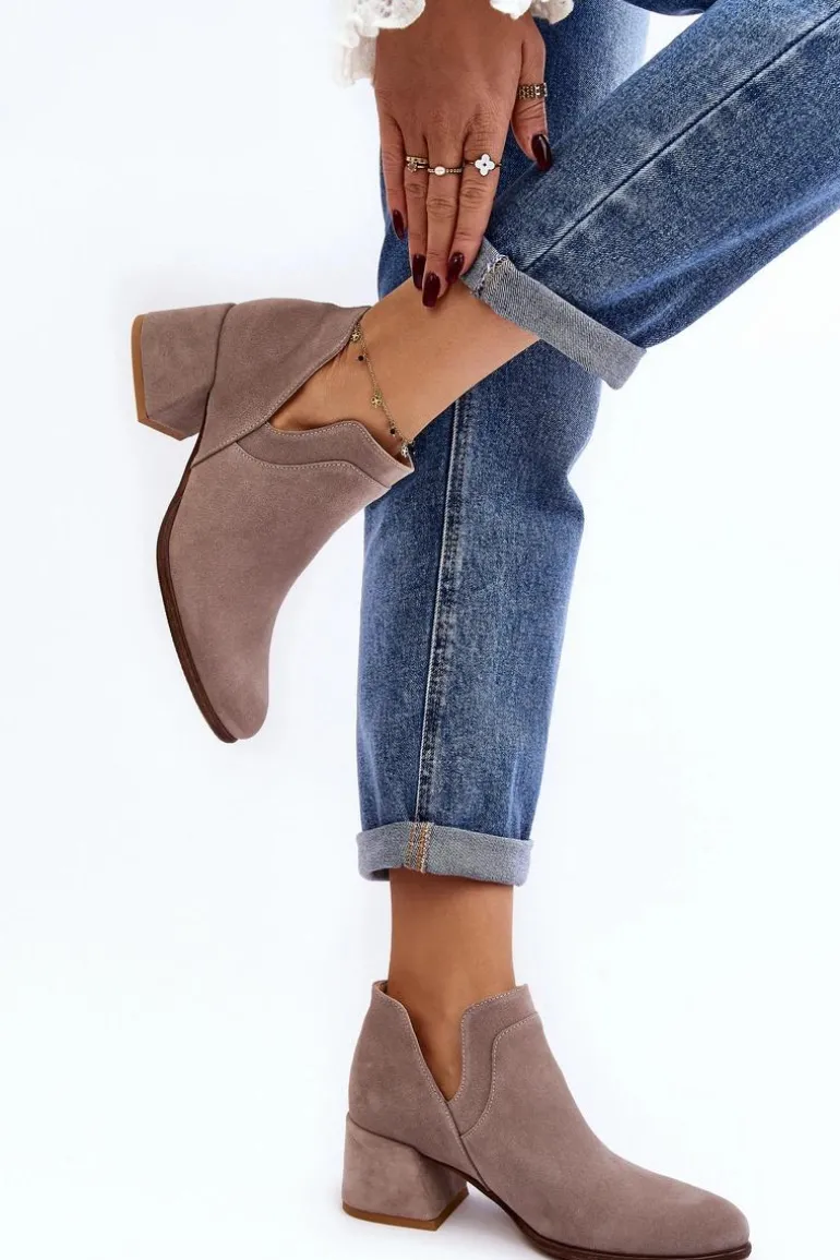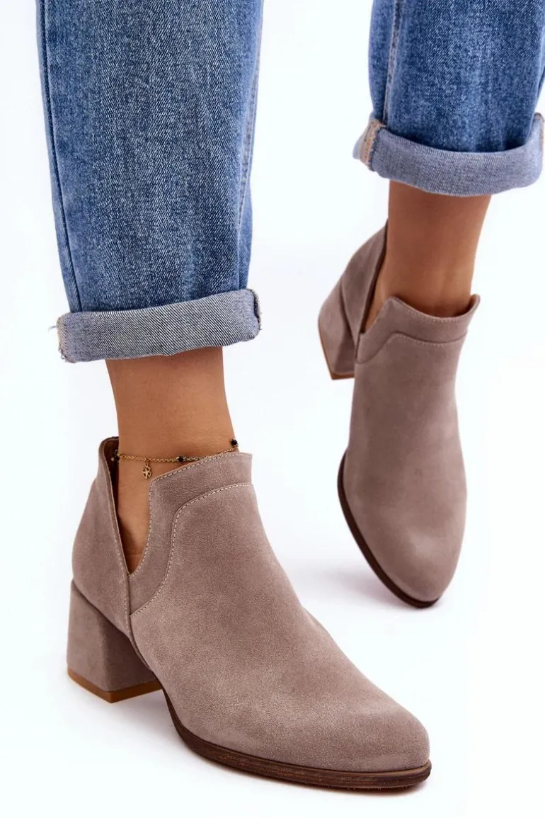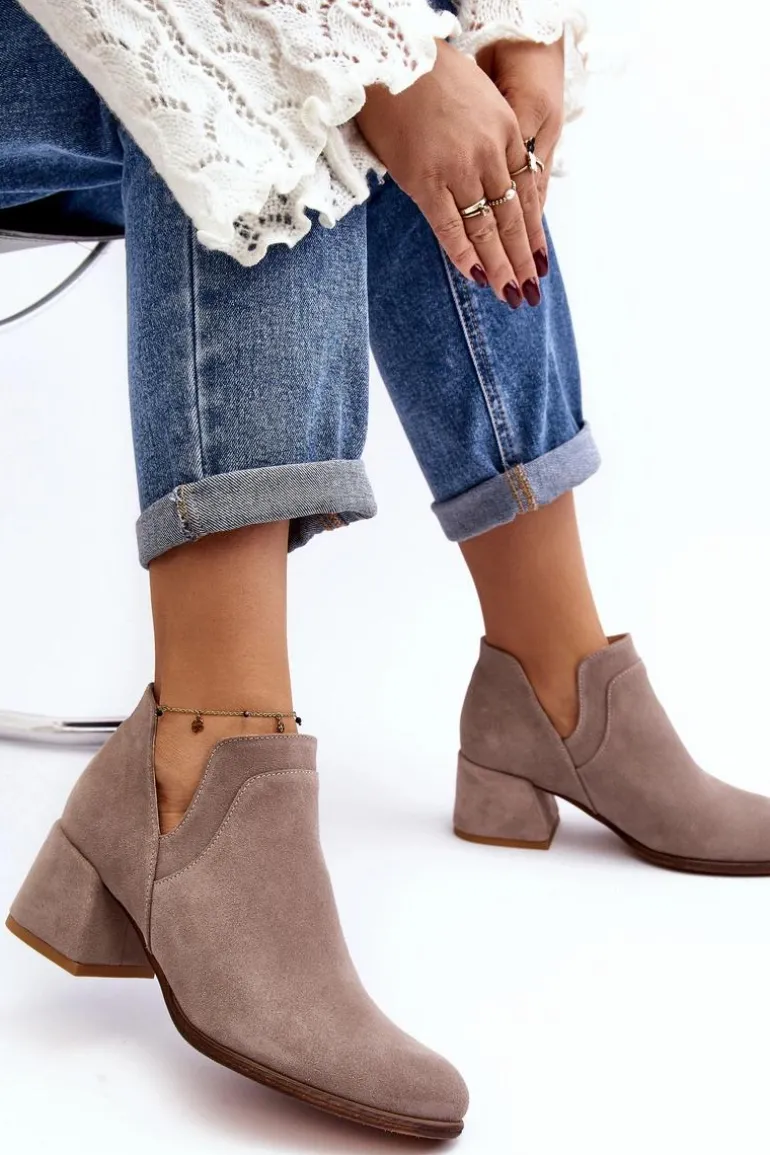 Zamszowe Botki Z Wycięciami Na Obcasie Jasnobeżowe Dalros