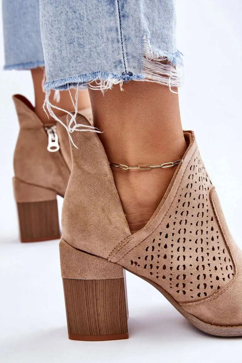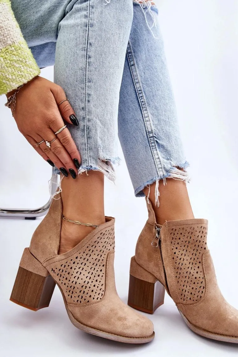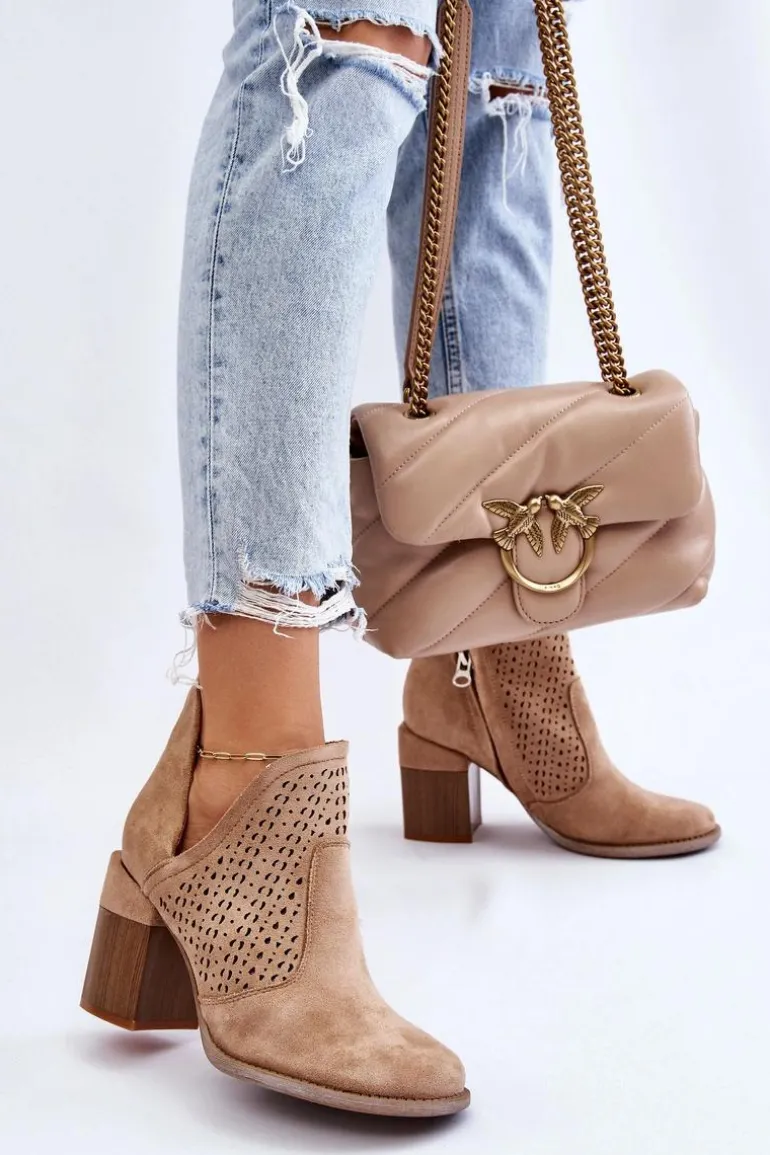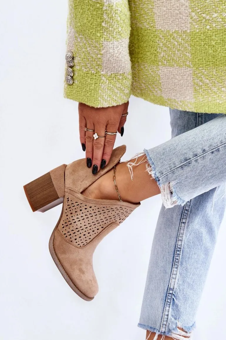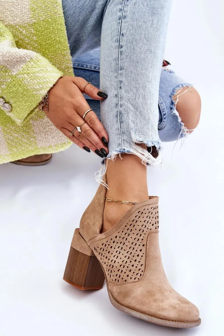 Zamszowe Botki Z Wycięciem Beżowe Layne