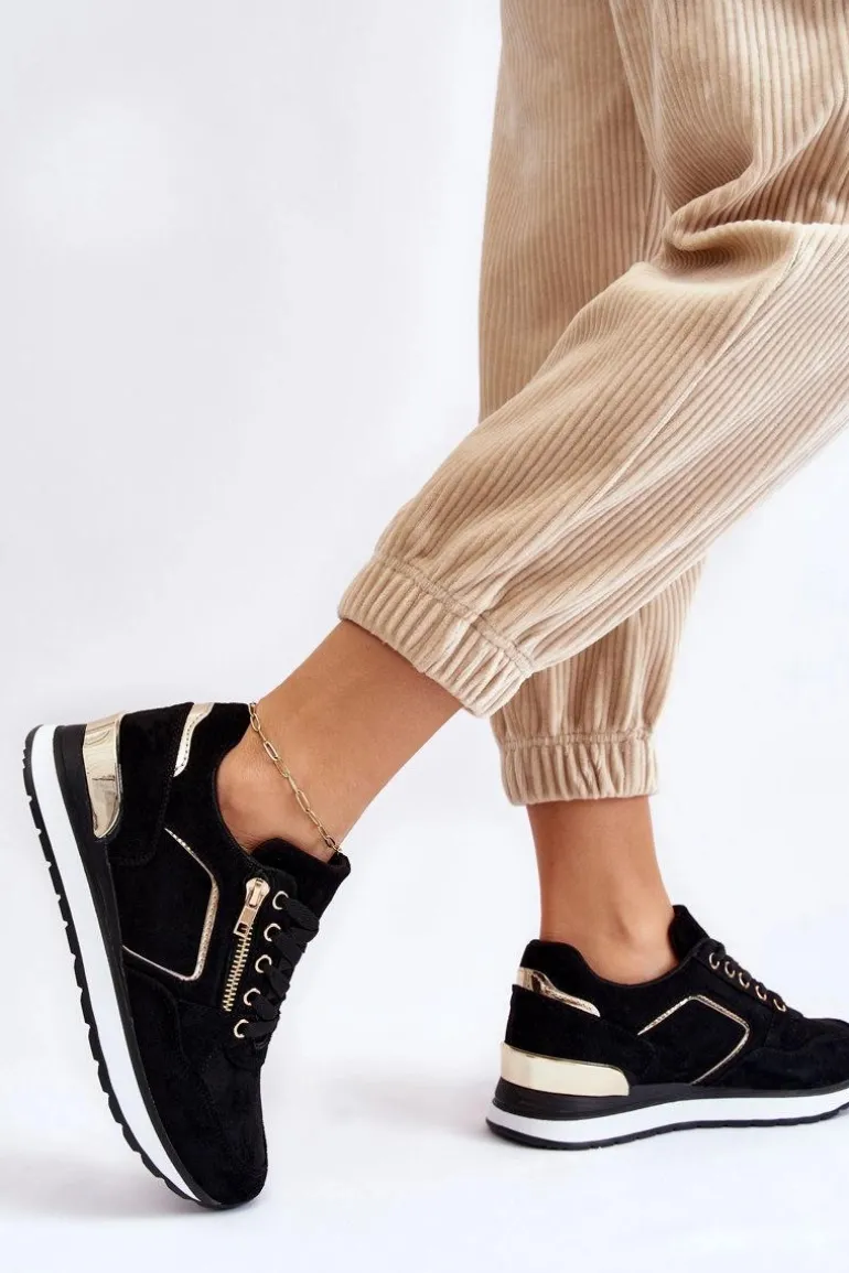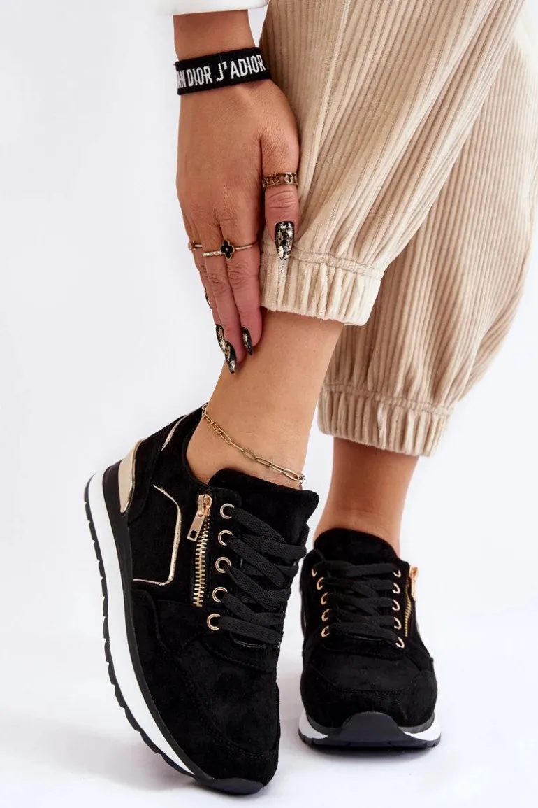 Buty sportowe z cholewką do kostki. Wykonane z zamszowej eko skóry, ozdobione lustrzanymi wstawkami. Wiązane na płaskie sznurówki. Udekorowane ozdobnym zamkiem. Osadzone na delikatnym koturnie z lustrzaną wstawką oraz platformie wykonanej z tworzywa sztucznego. Wkładka wykonana z materiału jest dodatkowo wyciągana. Szukasz przykuwających uwagę sneakersów? Ten model jest idealny! Przy wyborze rozmiaru prosimy sugerować się tabelą rozmiarów.