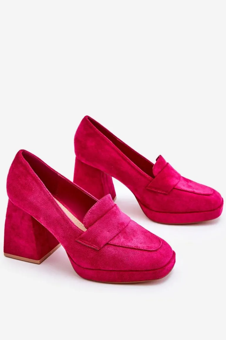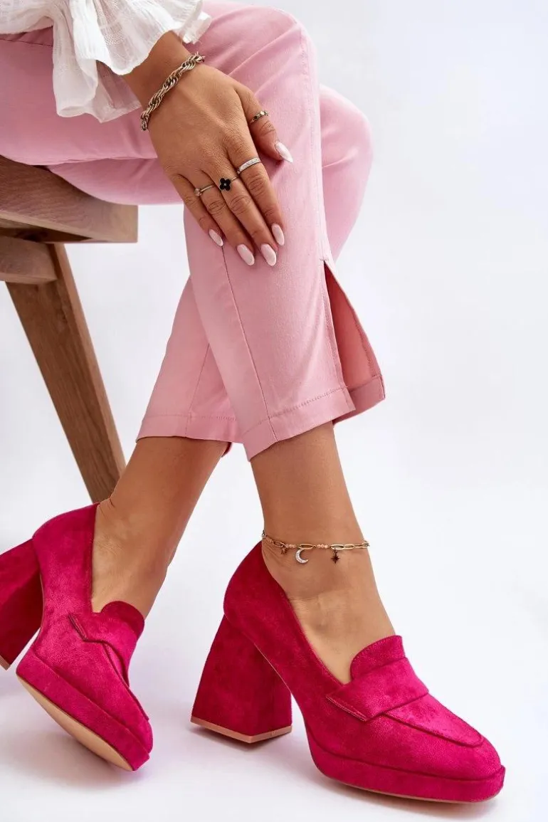 Zamszowe Czółenka Na Masywnym Obcasie I Platformie Fuksja Adriel