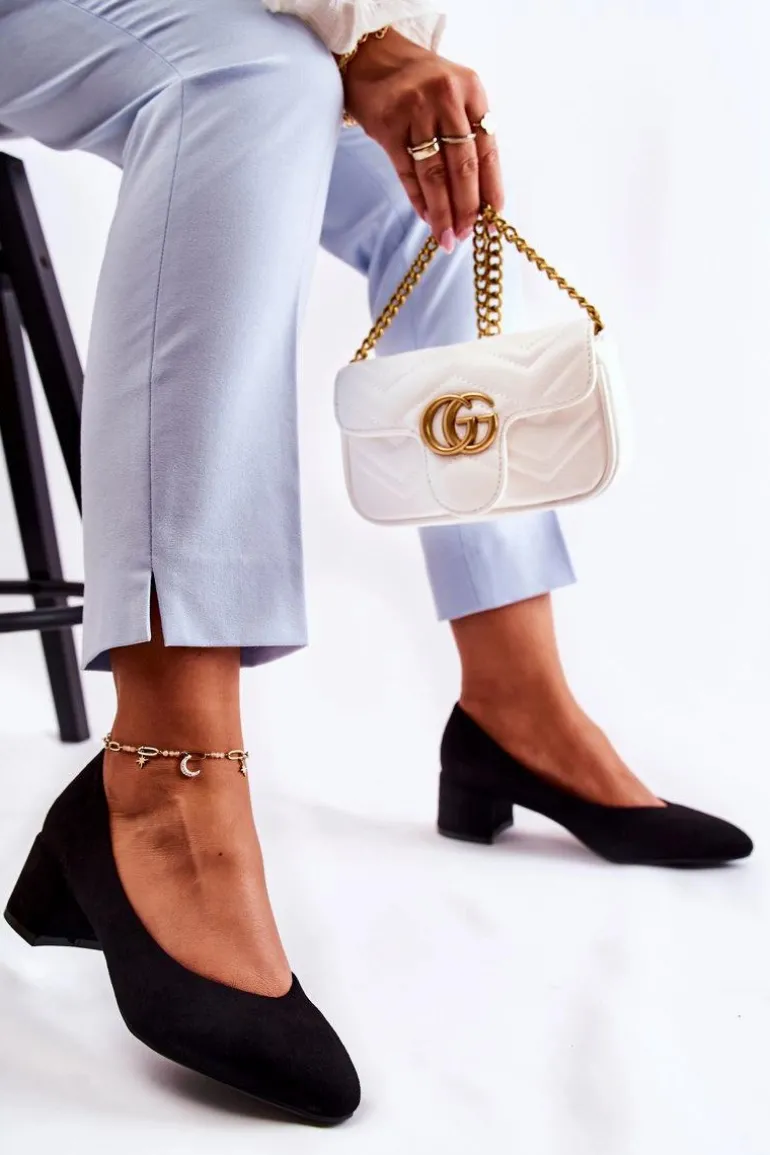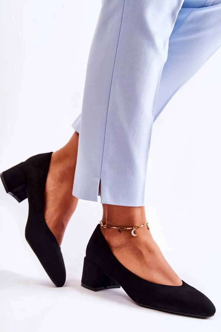Klasyczne i eleganckie czółenka zostały wykonane z eko zamszu. Model posiada obcas w postaci niskiego słupka, co zapewni stabilność. Miękka i komfortowa w użytkowaniu wkładka wykonana jest z eko skóry. Model wsuwany z noskiem w szpic. Koniecznie sprawdź pozostałe modele czółenek dostępnych w naszej ofercie. Przy wyborze rozmiaru prosimy sugerować się tabelą rozmiarów.