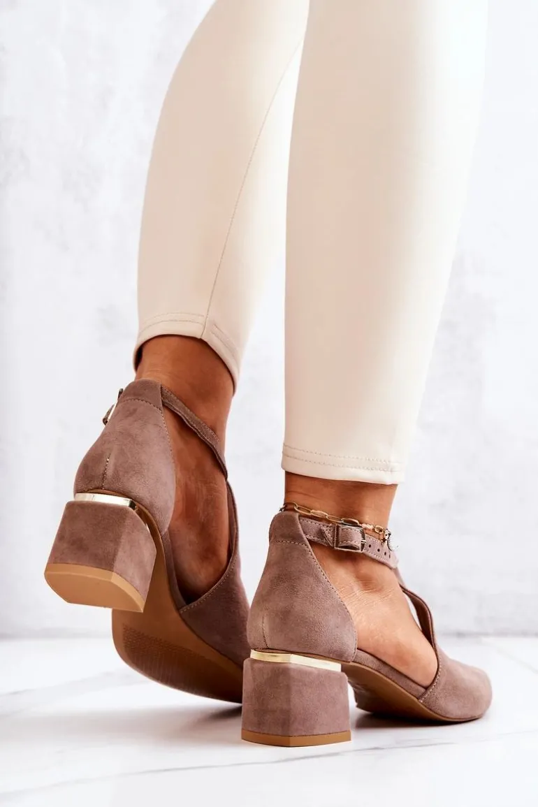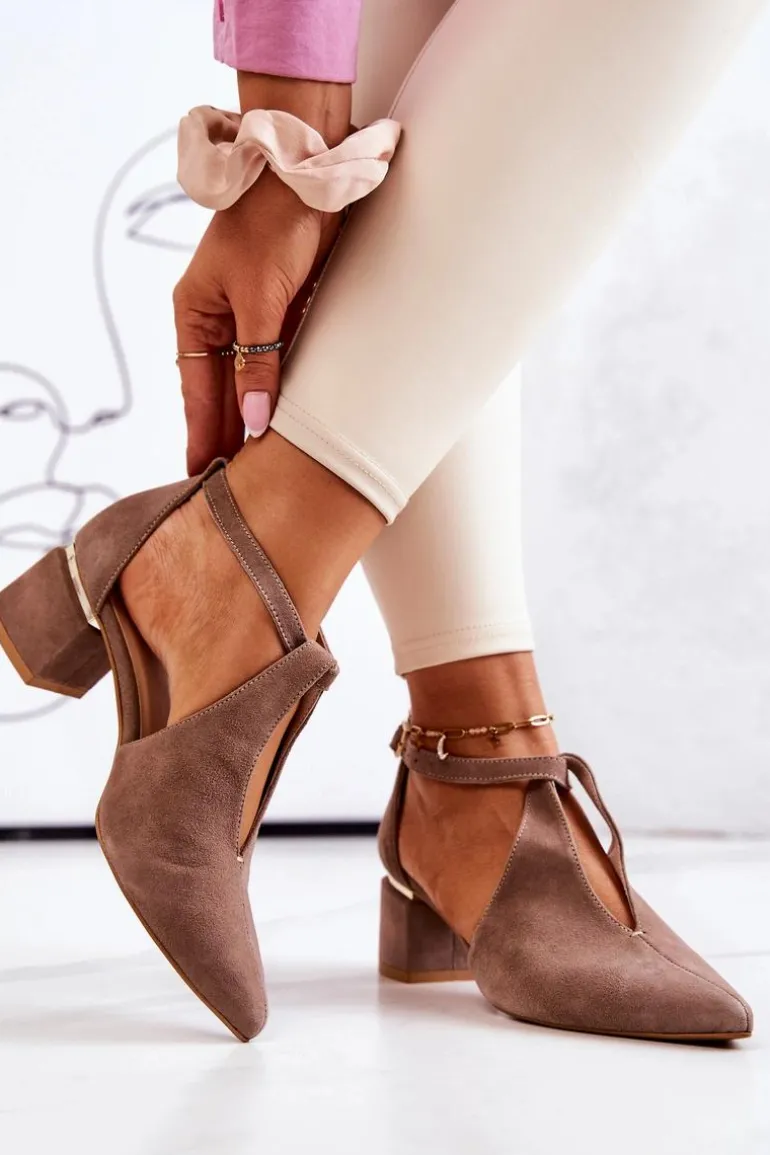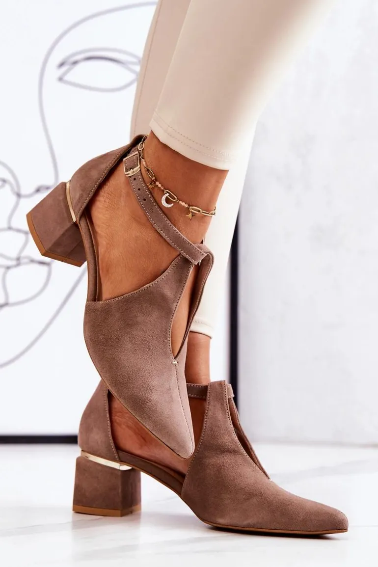 Zamszowe Czółenka Na Obcasie Laura Messi 2309 Beżowe